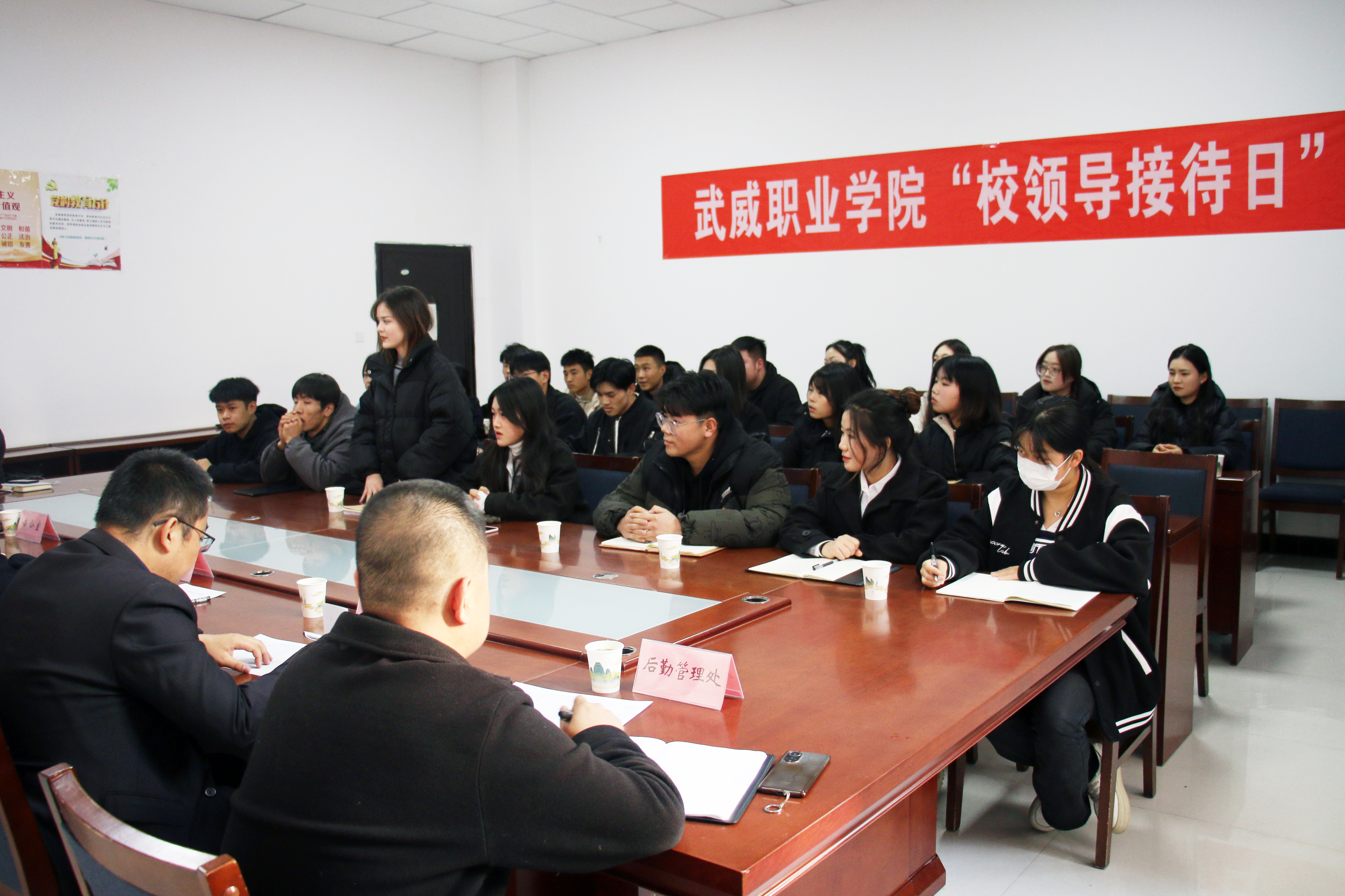 為切實(shí)做好“四下基層”工作,保障學(xué)生權(quán)益,進(jìn)一步營造民主和諧的校園氛圍,提高校園服務(wù)質(zhì)量和管理水平,學(xué)校于11月24日下午在學(xué)生發(fā)展中心103會(huì)議室舉辦了2023-2024學(xué)年第一期“校領(lǐng)導(dǎo)接待日”活動(dòng)。校長、黨委副書記張開禮與來自各二級學(xué)院的22名學(xué)生代表進(jìn)行了親切交流,辦公室、教務(wù)處、學(xué)生工作處、后勤管理處等相關(guān)部門負(fù)責(zé)人參加了活動(dòng)。