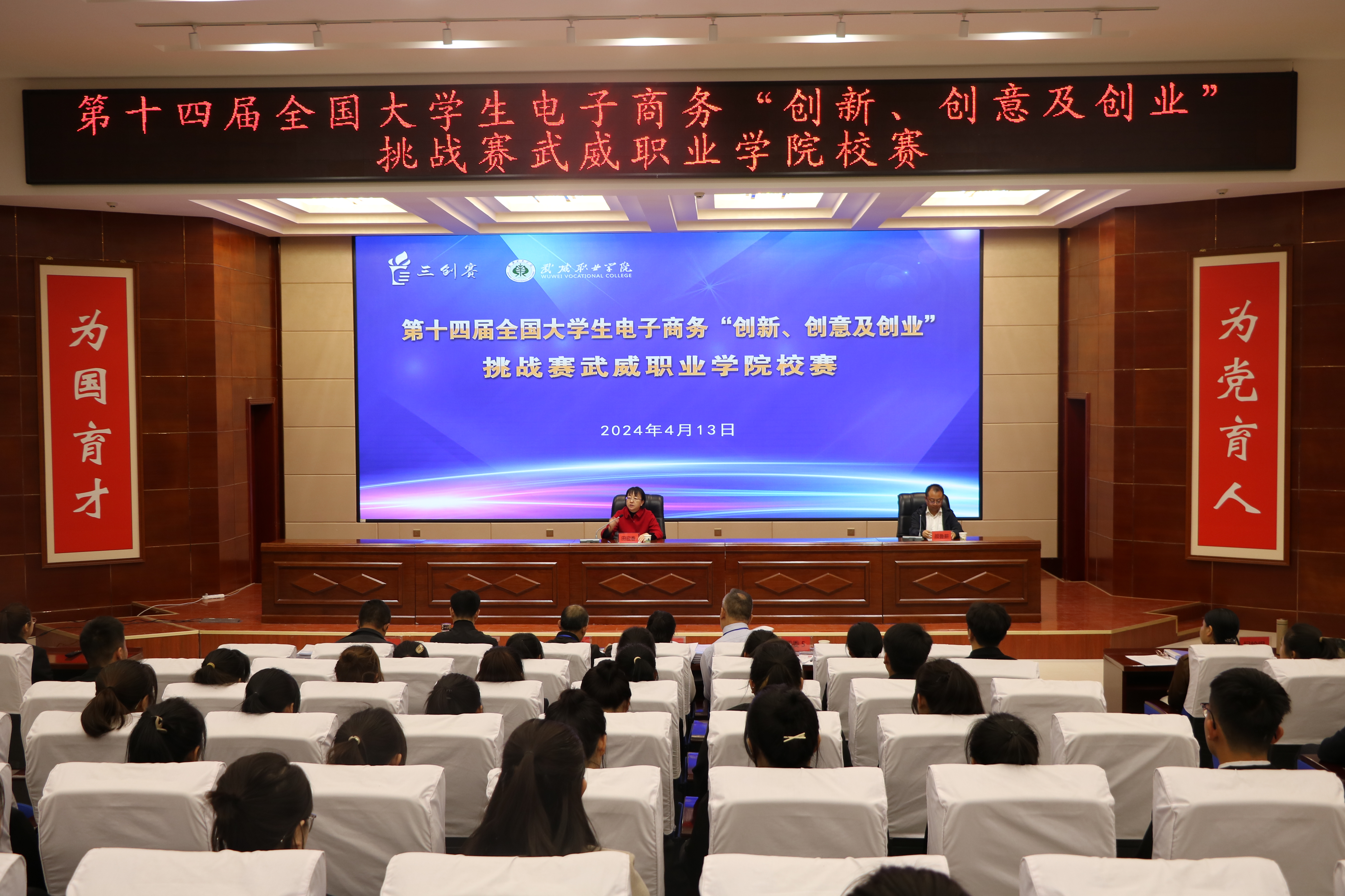 4月13日,我校在菁英廳成功舉辦第十四屆全國(guó)大學(xué)生電子商務(wù)“創(chuàng)新、創(chuàng)意及創(chuàng)業(yè)”挑戰(zhàn)賽校賽及開(kāi)幕式。學(xué)校黨委委員、副校長(zhǎng)田迎春出席開(kāi)幕式,專家評(píng)委、參賽選手等200人參加。