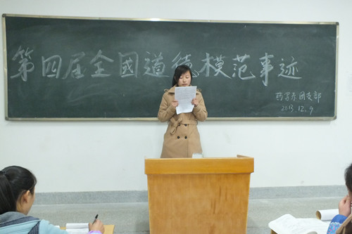 藥學(xué)系團(tuán)總支于2013年12月9日組織全體同學(xué)深入學(xué)習(xí)了“第四屆全國道德模范事跡”,一個個動人的事跡印入耳畔,他們或充滿愛心、助人為樂,或見義勇為、舍身忘死,或敬老愛親、血脈情深。