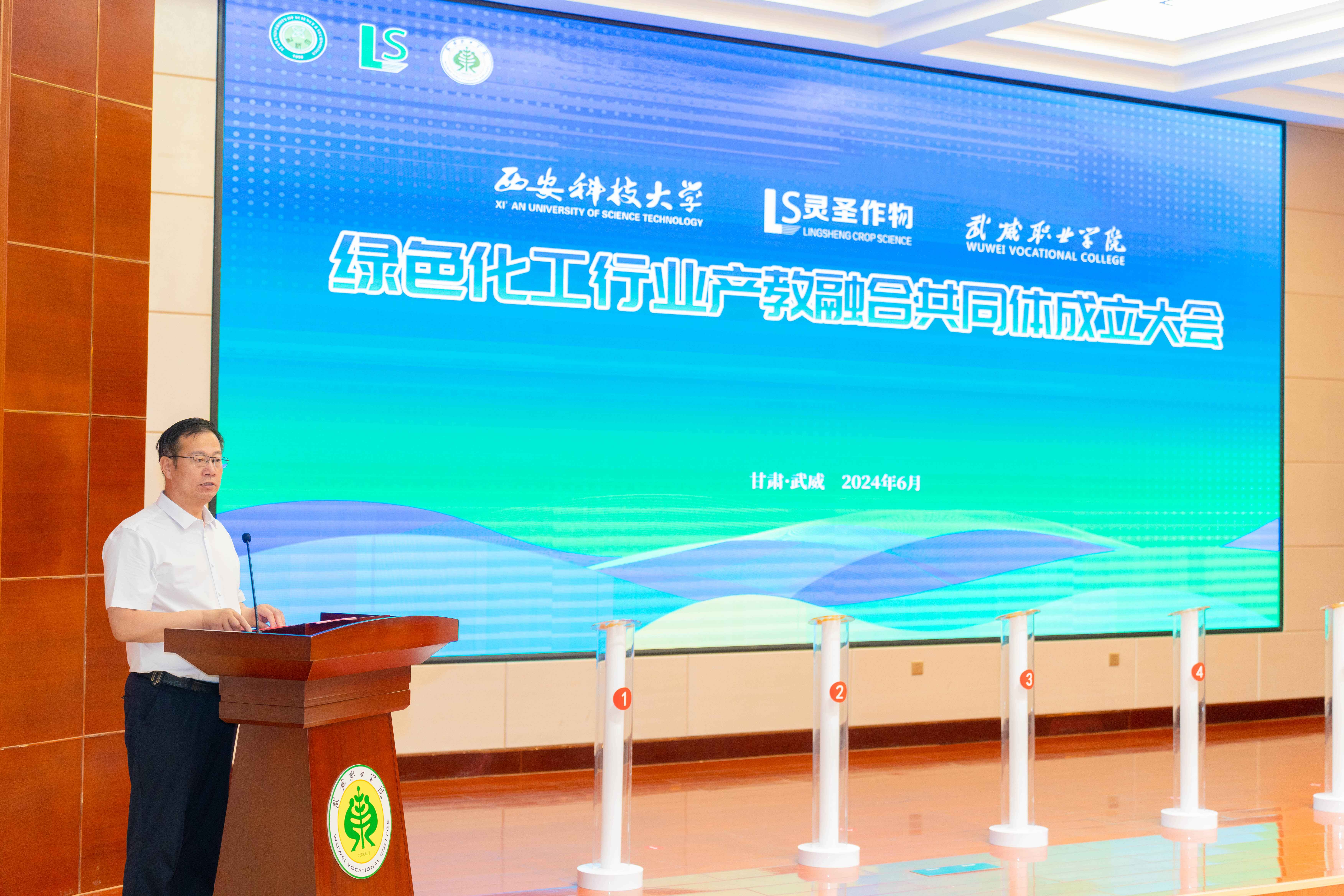 6月21日,綠色化工行業(yè)產(chǎn)教融合共同體成立大會(huì)在武威職業(yè)學(xué)院舉行,此次大會(huì)由內(nèi)蒙古靈圣作物科技有限公司、西安科技大學(xué)和武威職業(yè)學(xué)院牽頭,聯(lián)合科研院所、本科院校、中高職院校、行業(yè)協(xié)會(huì)及上下游企業(yè)等52家單位共同成立。