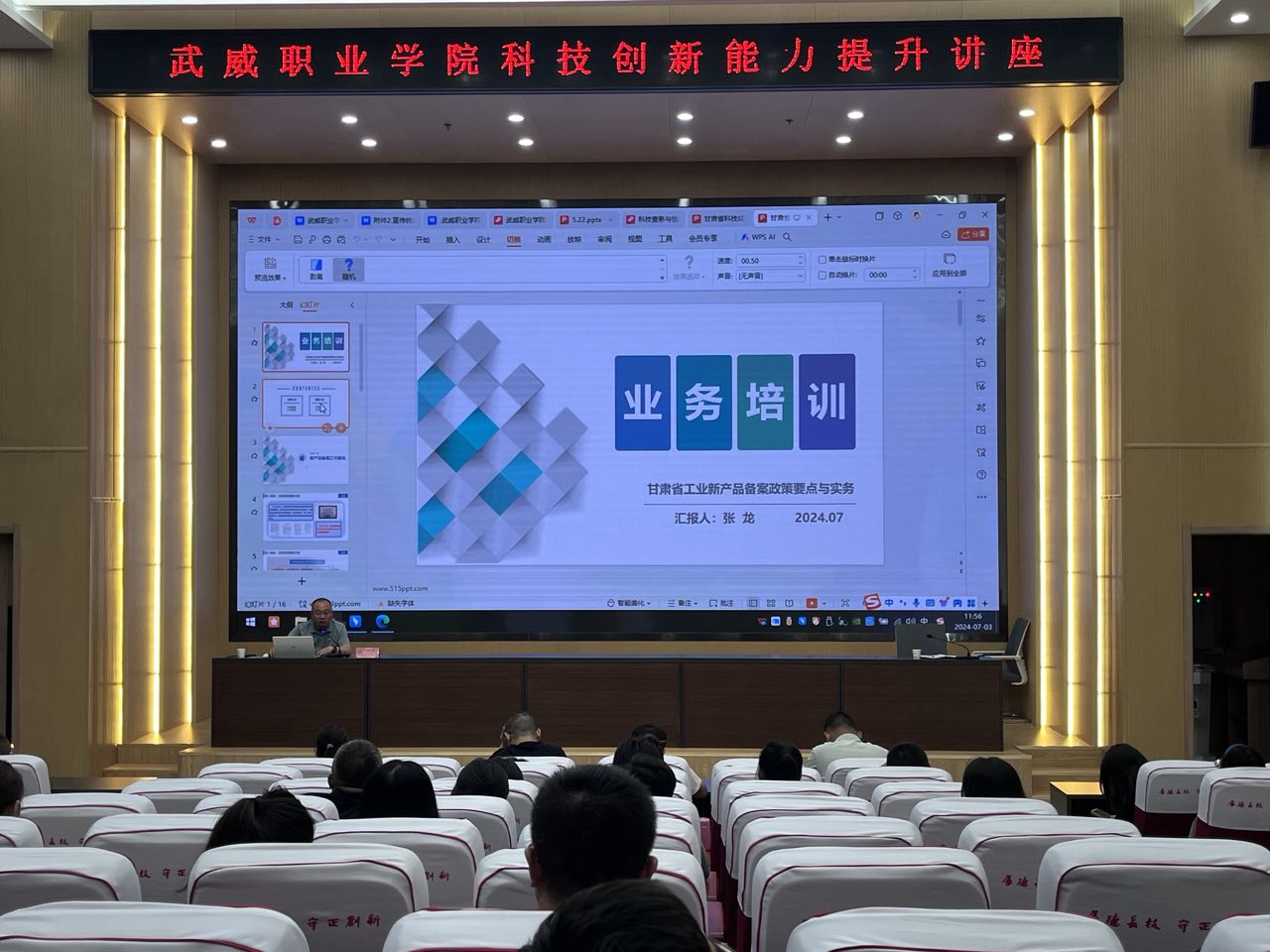 為進一步提升學(xué)校教師科研創(chuàng)新能力,掌握科技成果評價及新產(chǎn)品備案實施細(xì)則,7月3日上午,科技處邀請了甘肅省科學(xué)技術(shù)情報研究所專家蘇海龍和張龍研究員來我校開展科研專題講座。教師們積極踴躍參加講座,認(rèn)真聆聽,收獲頗豐。