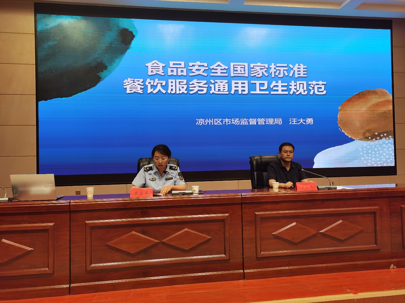 為加強學校食品安全管理,提升從業(yè)人員食品安全意識和服務水平,強化操作流程規(guī)范化、嚴格化、制度化和日常行為習慣養(yǎng)成,切實做好學校師生飲食安全保障工作。7月13日,學校邀請涼州區(qū)市場監(jiān)督管理局副局長汪大勇同志對學校食堂從業(yè)人員進行食品安全知識培訓,學校食堂相關經(jīng)營單位負責人和從業(yè)人員180多人參加了培訓。會議由學校黨委委員、副校長王永緒同志主持。