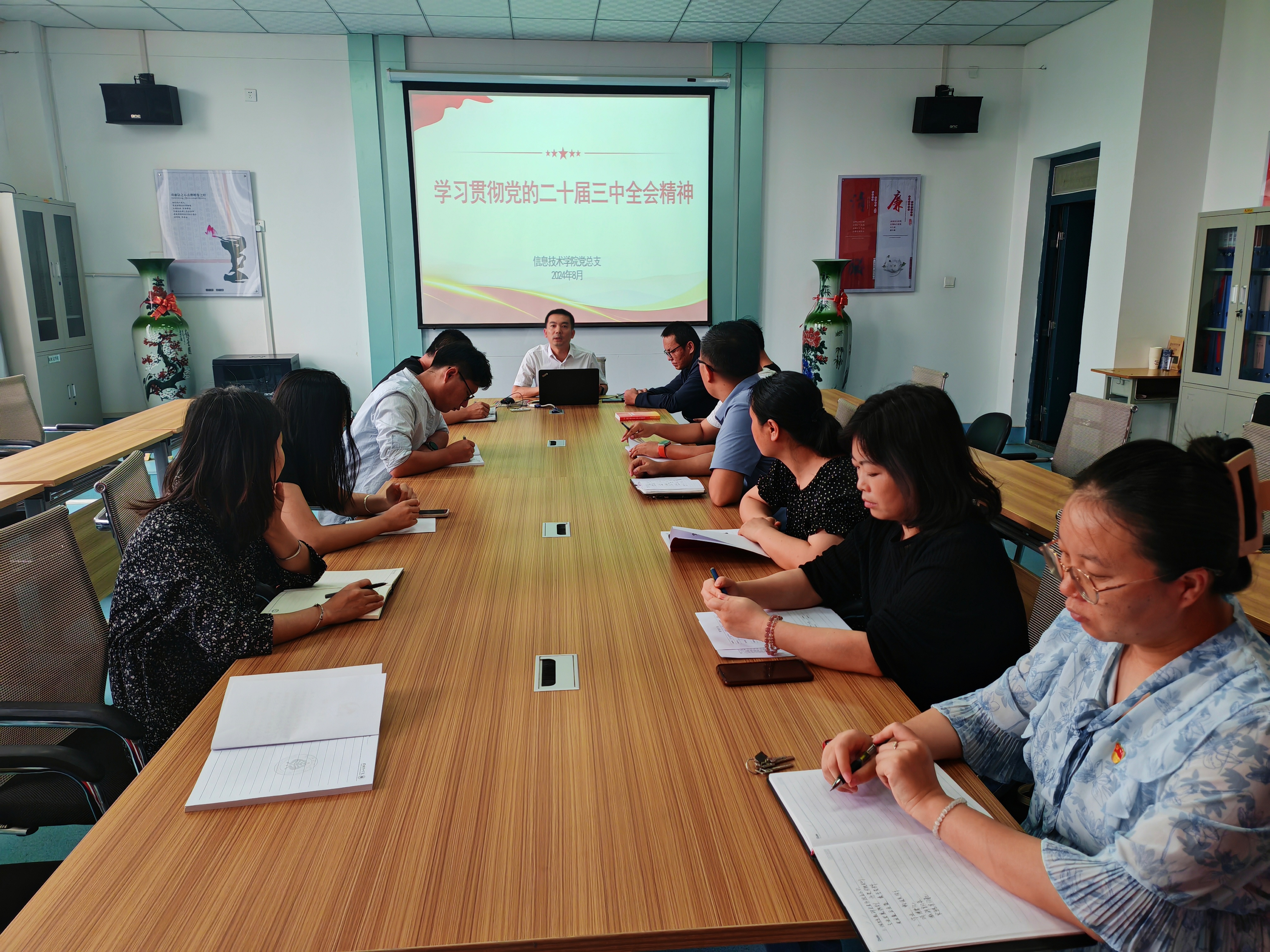 8月13日,信息技術(shù)學(xué)院召開學(xué)習(xí)黨的二十屆三中全會精神專題學(xué)習(xí)會議。學(xué)院黨總支書記史子新主持會議,全體黨員參加會議。