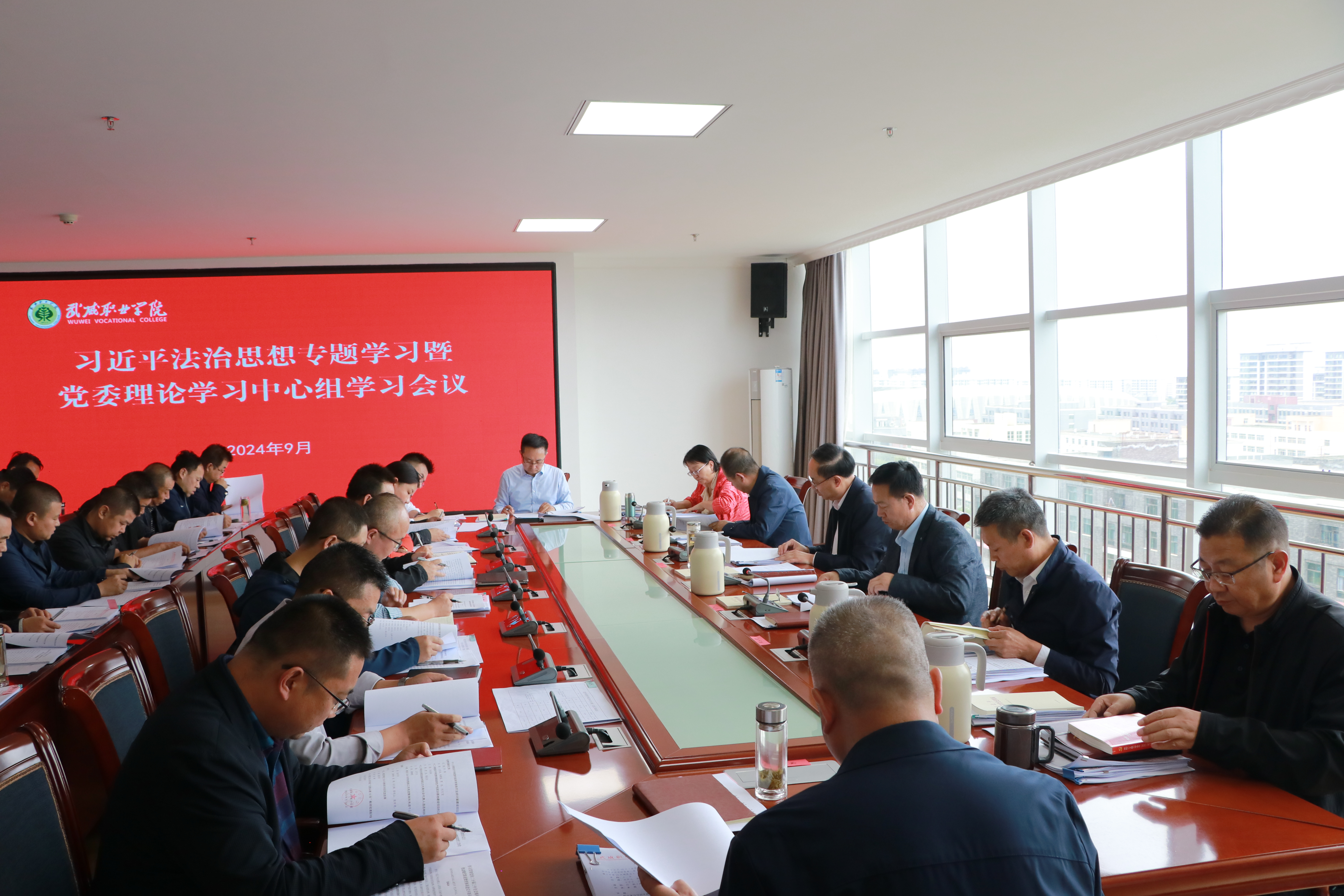 9月10日下午,學(xué)校召開(kāi)習(xí)近平法治思想專(zhuān)題學(xué)習(xí)暨黨委理論學(xué)習(xí)中心組學(xué)習(xí)會(huì)議。學(xué)校黨委領(lǐng)導(dǎo)班子成員,各部門(mén)、二級(jí)學(xué)院主要負(fù)責(zé)人,各黨總支與直屬黨支部書(shū)記參加會(huì)議。黨委書(shū)記王宏主持會(huì)議并講話。