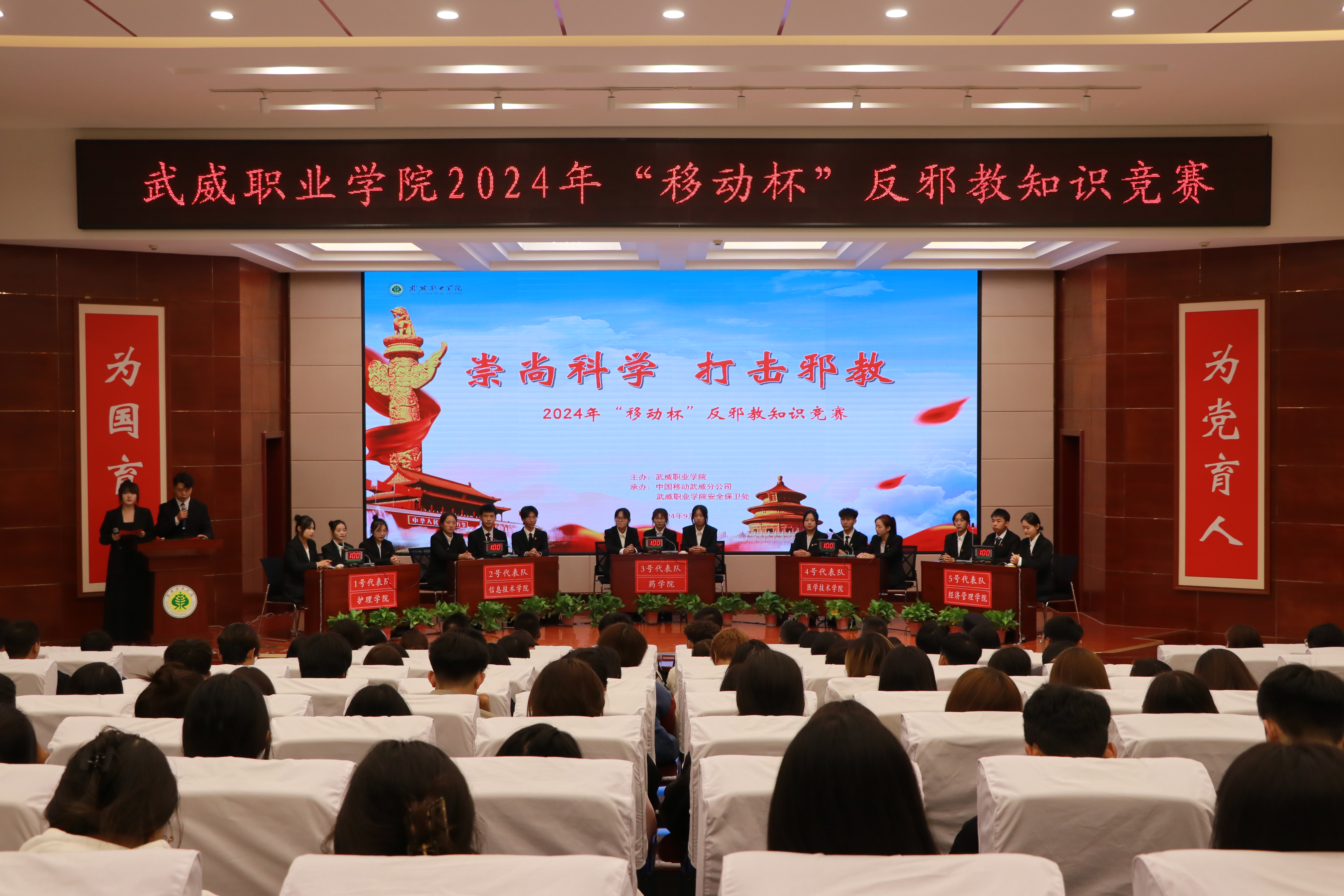 為全面貫徹落實(shí)防邪反邪工作,進(jìn)一步提高廣大師生對(duì)邪教組織反動(dòng)本質(zhì)的認(rèn)識(shí),切實(shí)增強(qiáng)識(shí)別邪教、抵制邪教的能力。9月13日,在學(xué)校菁英廳舉辦了2024年“移動(dòng)杯”反邪教知識(shí)競(jìng)賽。學(xué)校黨委委員、紀(jì)委書記陳曉煜、宣傳統(tǒng)戰(zhàn)部、學(xué)生工作部、安全保衛(wèi)處、校團(tuán)委負(fù)責(zé)人出席活動(dòng),各二級(jí)學(xué)院200余名師生觀看了比賽。