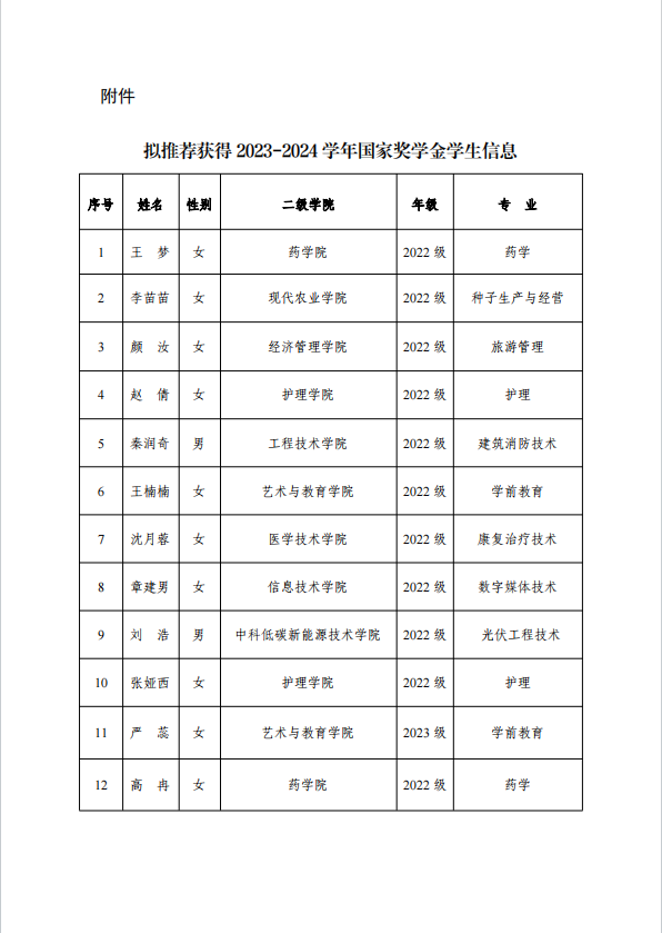 武威職業(yè)學(xué)院關(guān)于2023-2024學(xué)年國(guó)家獎(jiǎng)學(xué)金候選人的公示