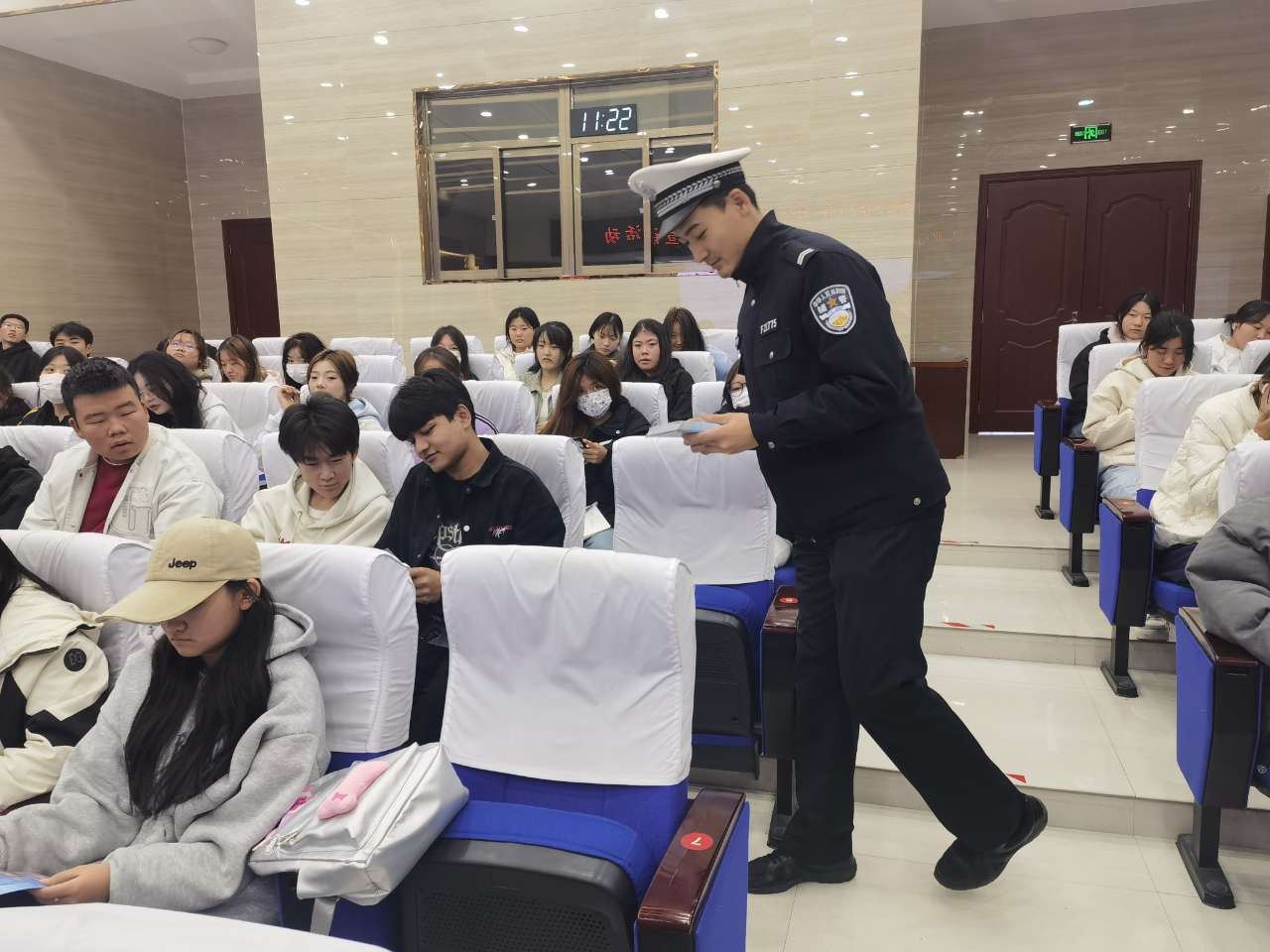 為進(jìn)一步推進(jìn)平安校園建設(shè),增強(qiáng)師生的交通安全意識(shí),預(yù)防和減少交通事故的發(fā)生。10月24日,學(xué)校邀請武威市公安局交警支隊(duì)王穎警官來學(xué)校開展交通安全知識(shí)宣講活動(dòng),為師生們帶來了一堂深刻的交通安全警示課。宣講活動(dòng)由安全保衛(wèi)處處長李欣主持。