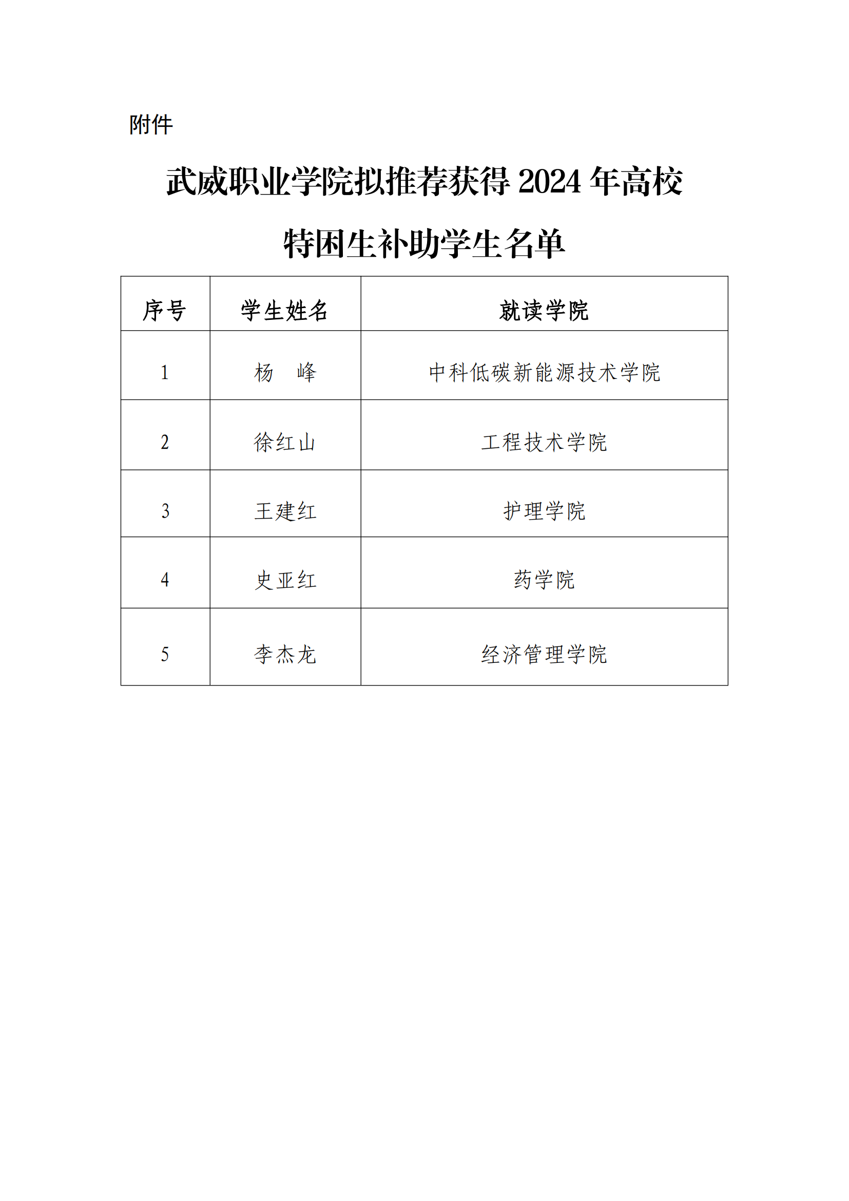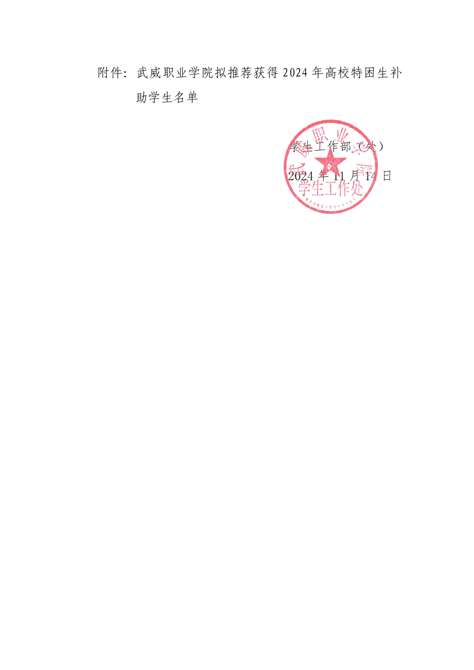 武威職業(yè)學(xué)院2024年高校特困生補(bǔ)助獲得者公示