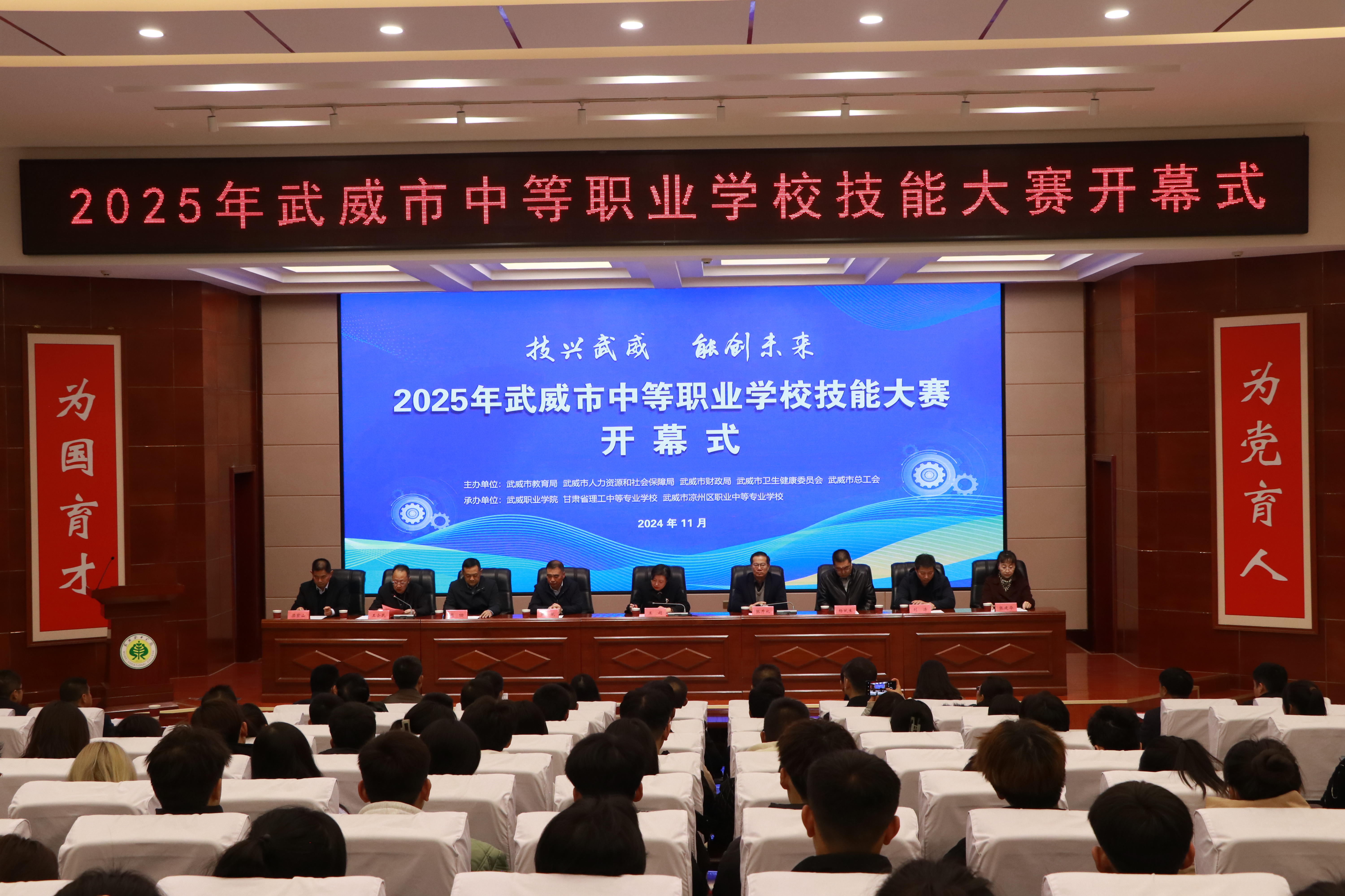11月18日,由武威市教育局、武威市人社局、武威市財(cái)政局、武威市衛(wèi)生健康委員會(huì)、武威市總工會(huì)主辦,我校和甘肅省理工中等專業(yè)學(xué)校、武威市涼州區(qū)職業(yè)中等專業(yè)學(xué)校承辦的2025年武威市中等職業(yè)學(xué)校技能大賽在學(xué)校菁英廳隆重開幕。