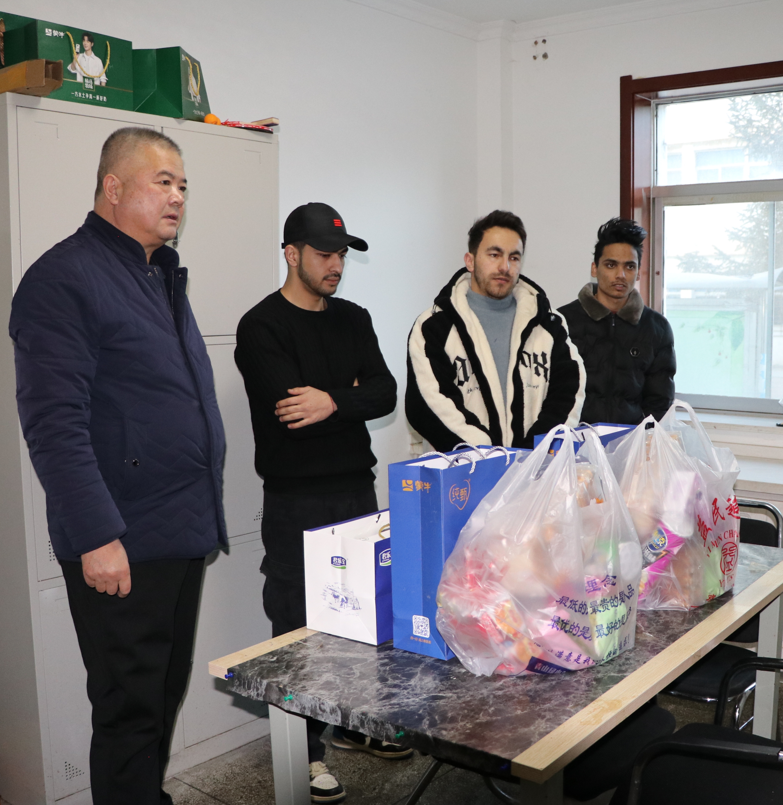 在留學生公寓樓,王守云仔細察看了留學生公寓設施設備配套及使用情況,并與留學生進行親切交談。在交流中,校領導詳細詢問留學生們在校的學習進展、生活狀況及面臨的困難,叮囑留學生們要注意安全,有困難隨時向?qū)W校和所在二級學院反映。同時,鼓勵同學們合理安排假期生活和學習,利用假期實地去感知中國不同地區(qū)的節(jié)日氛圍,品嘗中國美食,領略中華文化。隨后向留學生們送上暖心禮包,表達對留學生節(jié)日的祝福和新春的祝愿,留學生向老師們的關心和慰問表示感謝。