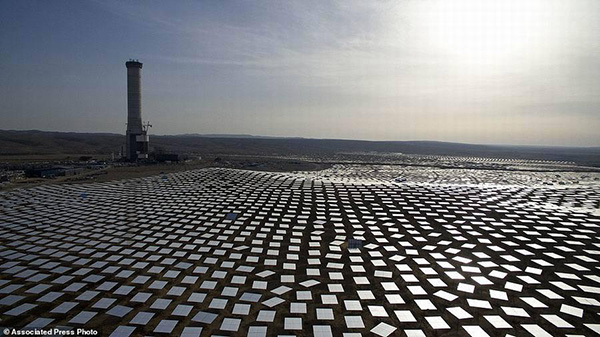 以色列內(nèi)蓋夫沙漠上5萬個(gè)日光反射鏡面環(huán)繞一座太陽能塔,該太陽能塔高度為250米。目前,在以色列晴朗天氣,太陽能利用率非常低,未來這項(xiàng)以色列最大的再生能源項(xiàng)目將具有較好的應(yīng)用前景,預(yù)計(jì)2018年建造完成。