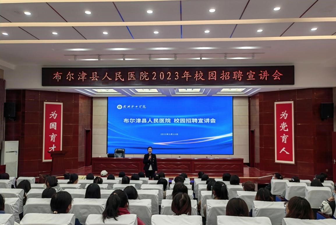 李娟介紹了布爾津縣人民醫(yī)院的基本情況、發(fā)展思路和人才需求,表達(dá)了對此次合作的美好祝愿。王守云對李娟一行來?,F(xiàn)場簽約表示了歡迎,也對布爾津縣人民醫(yī)院近年的發(fā)展成果給予了高度評價。雙方表示,希望今后在學(xué)生實習(xí)實訓(xùn)、人才培養(yǎng)質(zhì)量、畢業(yè)生實習(xí)就業(yè)、教師職業(yè)能力提升等方面加強(qiáng)合作,拓寬合作范圍。簽約儀式結(jié)束后,布爾津縣人民醫(yī)院在學(xué)生發(fā)展中心舉行了校園招聘宣講活動,約200名師生參加,部分學(xué)生現(xiàn)場達(dá)成實習(xí)就業(yè)意向。