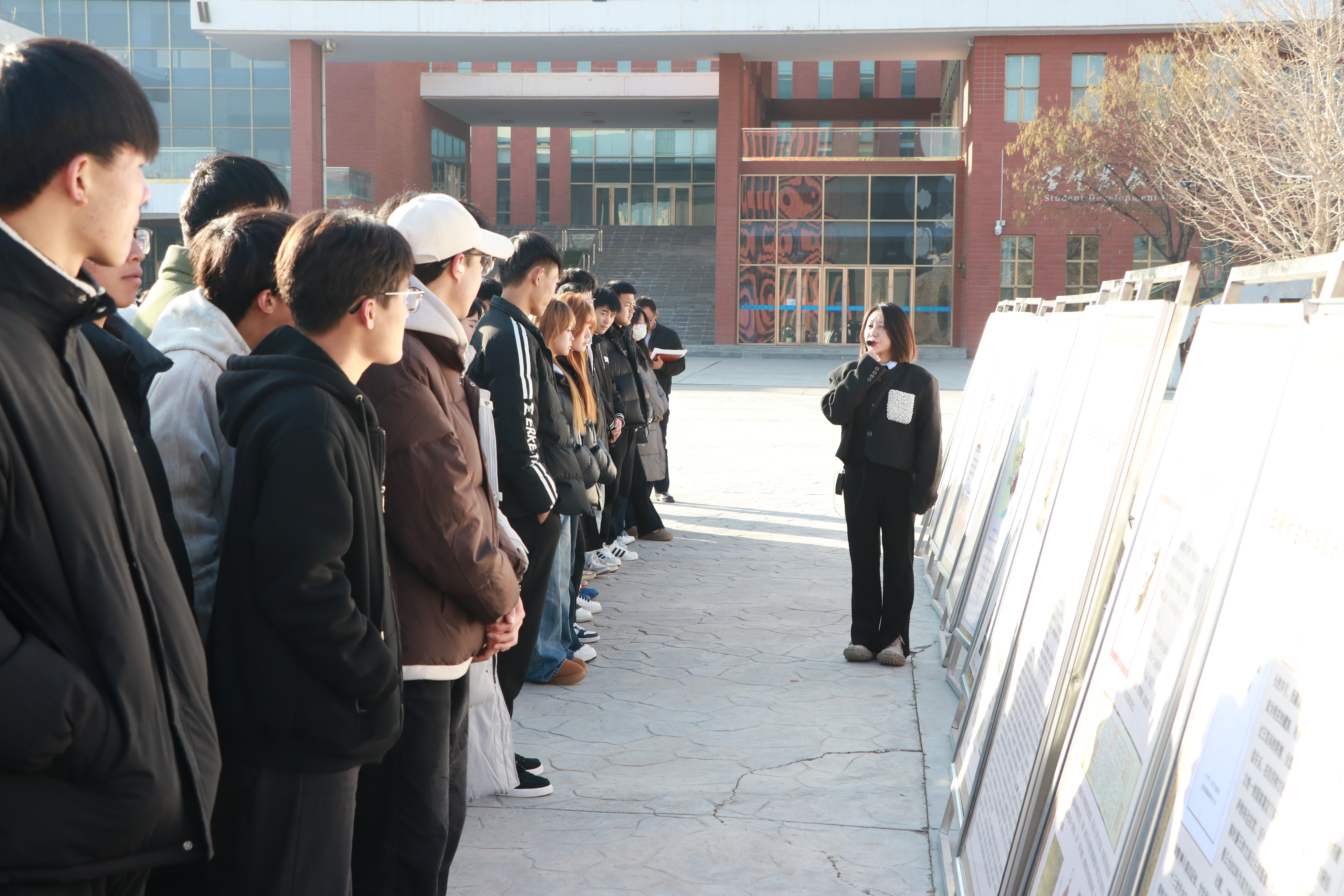 在學(xué)生發(fā)展中心前廣場,同學(xué)們現(xiàn)場參觀了民族文化宣傳展板,二十余塊展板圖文并茂生動(dòng)展現(xiàn)了涼州會(huì)盟的歷史背景和意義,展示了新時(shí)代武威市在民族團(tuán)結(jié)進(jìn)步方面的壯闊歷程和取得的豐碩成果。武威市涼州會(huì)盟紀(jì)念館講解員楊琪以涼州會(huì)盟歷史為線,現(xiàn)場向大家講解了民族團(tuán)結(jié)故事。