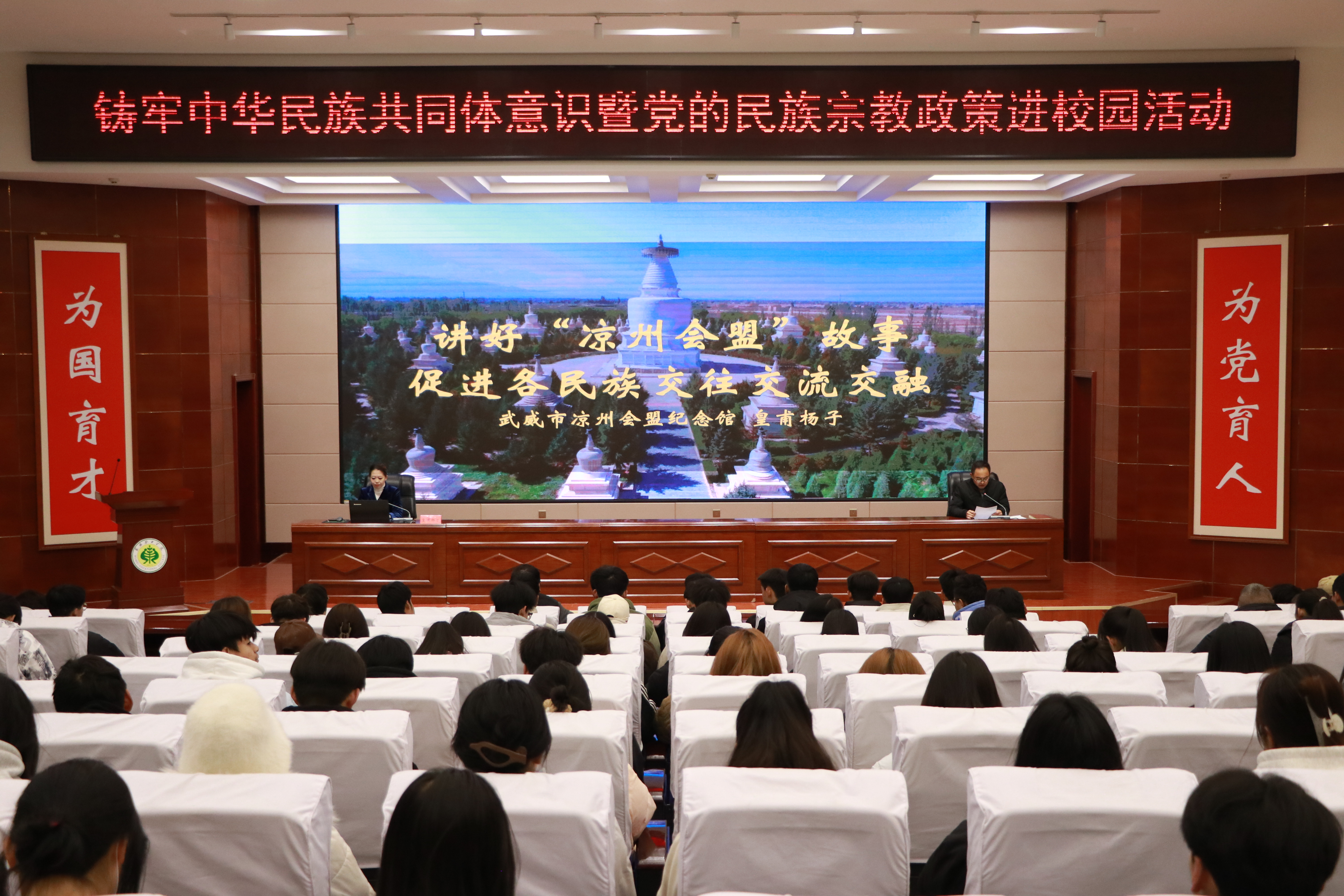 12月19日,學(xué)校聯(lián)合武威市涼州會(huì)盟紀(jì)念館,成功舉辦了鑄牢中華民族共同體意識暨民族宗教政策進(jìn)校園系列活動(dòng)?;顒?dòng)共吸引300余名師生參觀聽講。