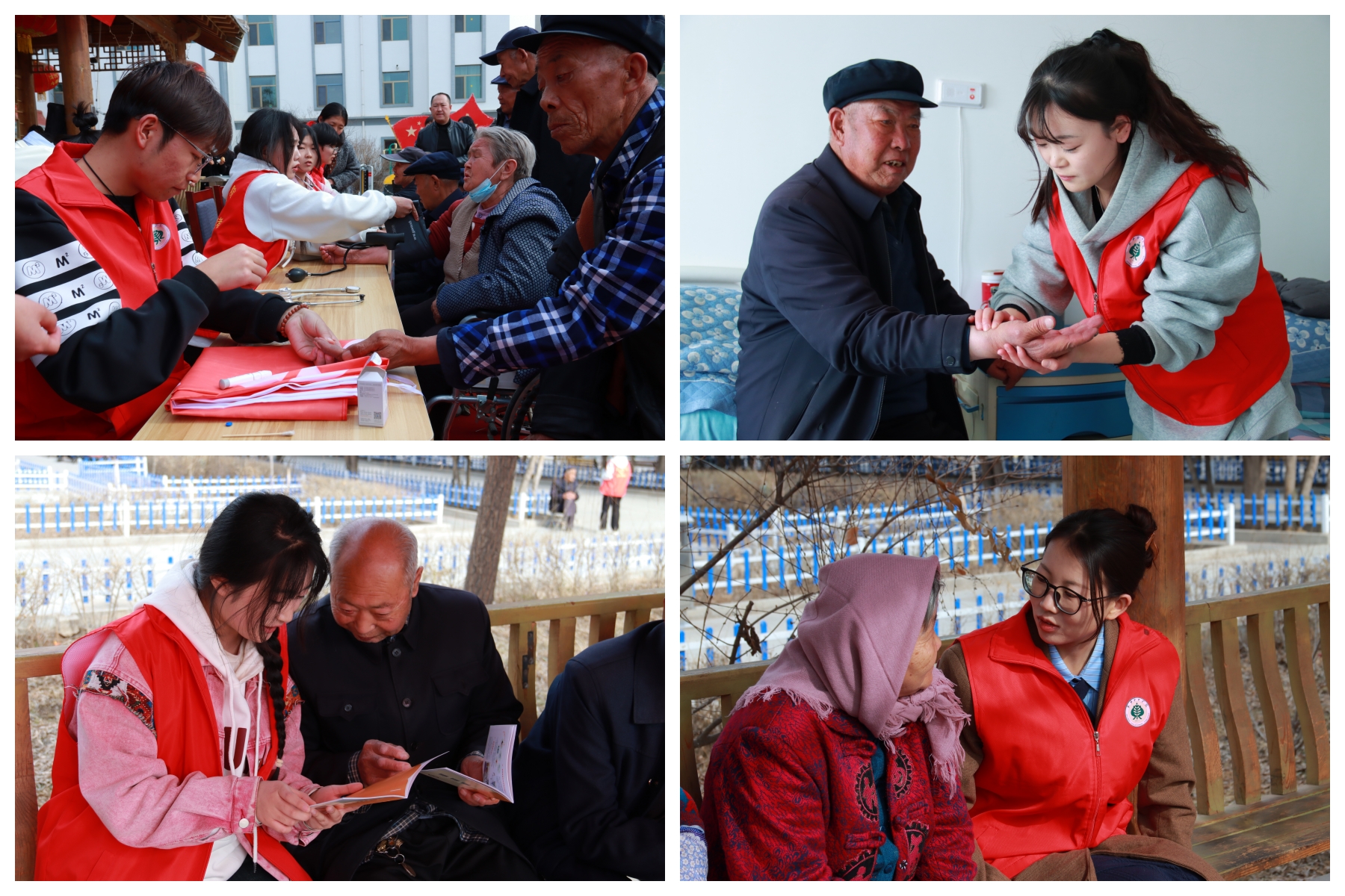在健康慰問環(huán)節(jié),護理學(xué)院志愿者結(jié)合專業(yè)特色,分組為老人測量血壓、血糖,并耐心給老人講解養(yǎng)生知識,告知在日常生活起居中的注意事項,以專業(yè)技能守護老人健康。