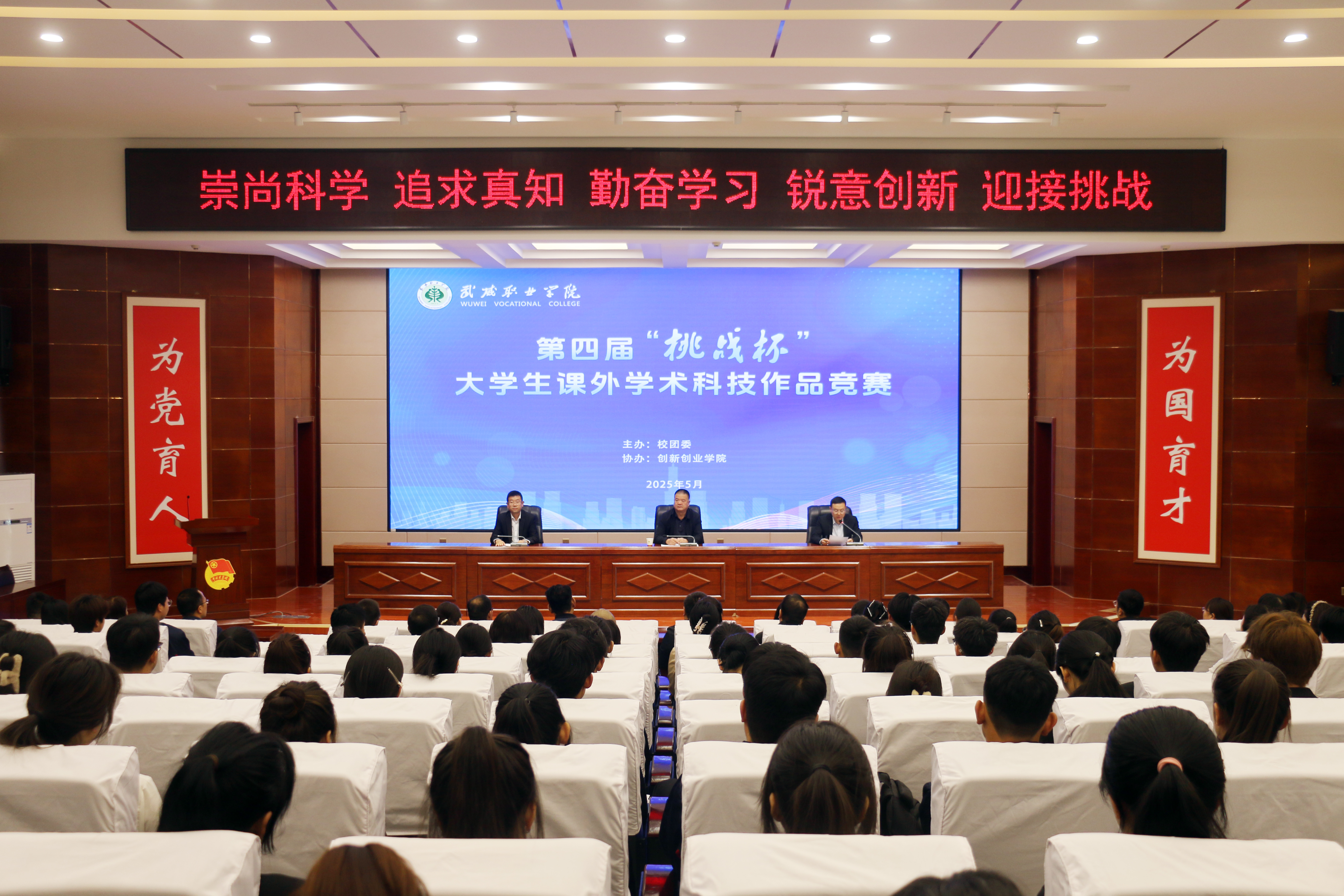 5月10日,學(xué)校在學(xué)生發(fā)展中心舉辦第四屆“挑戰(zhàn)杯”大學(xué)生課外學(xué)術(shù)科技競(jìng)賽終審決賽,黨委委員、副校長(zhǎng)王守云出席并講話,校團(tuán)委全體教師、創(chuàng)新創(chuàng)業(yè)學(xué)院相關(guān)教師、作品指導(dǎo)教師和學(xué)生等200余人參加。
