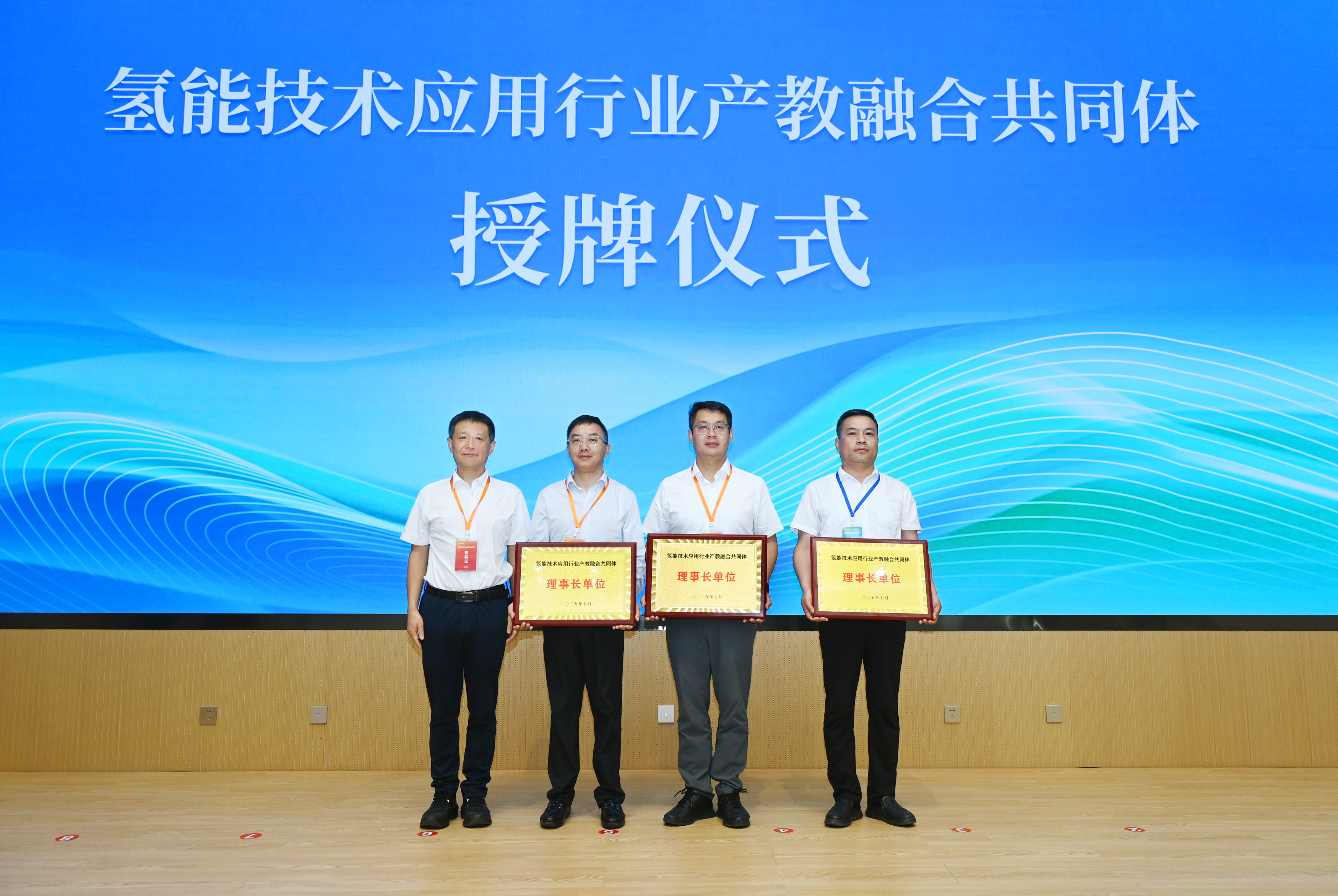 啟動儀式上,與會領(lǐng)導共同點亮啟動球,宣布氫能技術(shù)應用行業(yè)產(chǎn)教融合共同體正式成立。大會公布了共同體理事會成員單位名單,并為理事長單位、副理事長單位授牌。