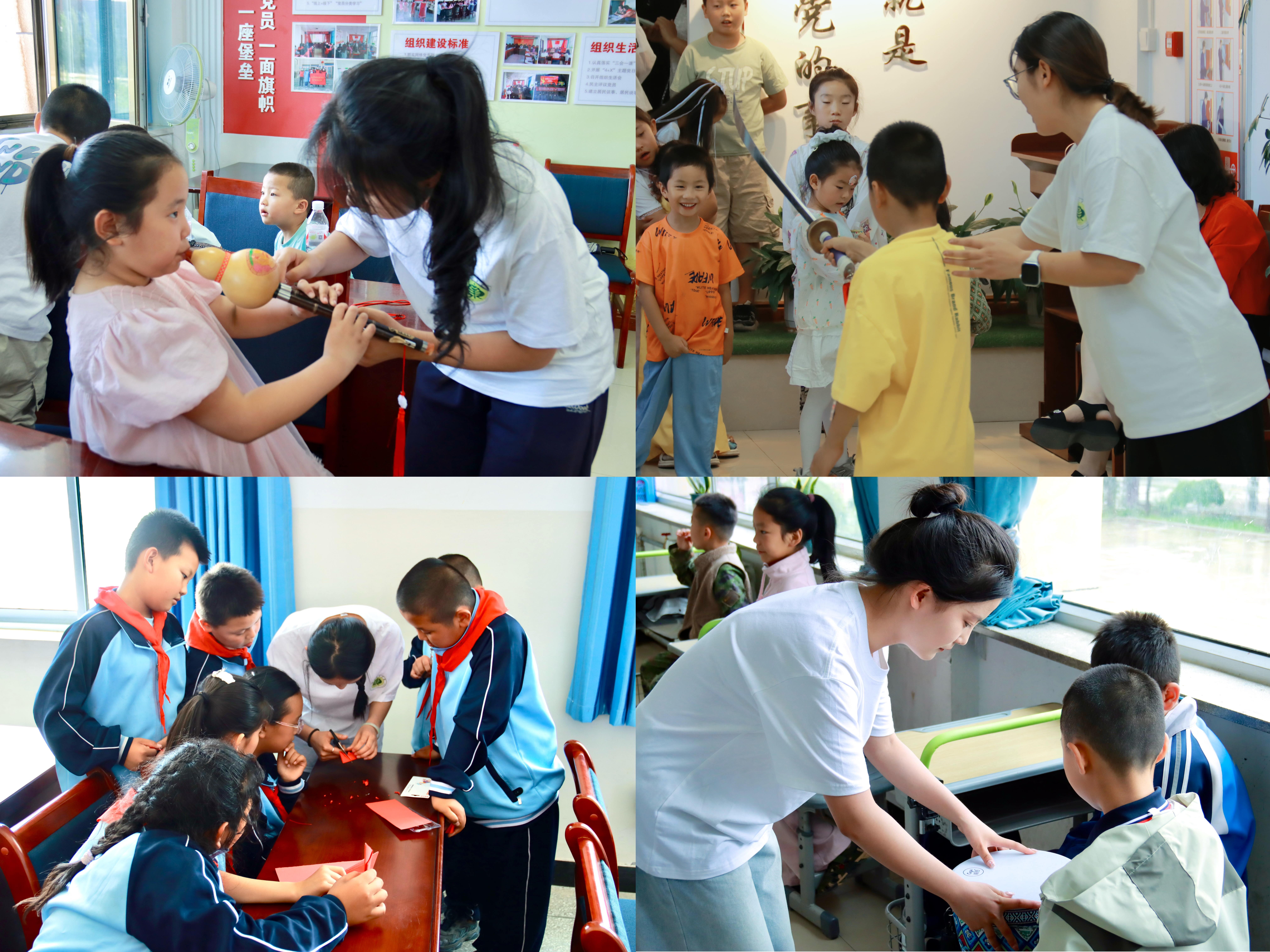 最后一站,志愿者走進(jìn)西關(guān)科技巷社區(qū),為孩子們送上三日“藝術(shù)成長(zhǎng)大禮包”。課堂上,葫蘆絲與手拍鼓的系統(tǒng)教學(xué)讓孩子們感受到了民族樂器的魅力,武術(shù)一招一式的示范與練習(xí)中體會(huì)到了傳統(tǒng)文化力量,志愿者還為孩子們贈(zèng)送葫蘆絲與手拍鼓?;顒?dòng)最后一天,孩子們?cè)谥驹刚邘ьI(lǐng)下參觀了學(xué)校新能源科技館與紅色文化館。展廳內(nèi),孩子們專注傾聽、主動(dòng)提問,對(duì)知識(shí)的渴望與對(duì)歷史的敬畏交織,讓孩子深刻體會(huì)到科技發(fā)展與紅色精神傳承的緊密聯(lián)系,也讓這趟社區(qū)之行更添了一層成長(zhǎng)的意義。