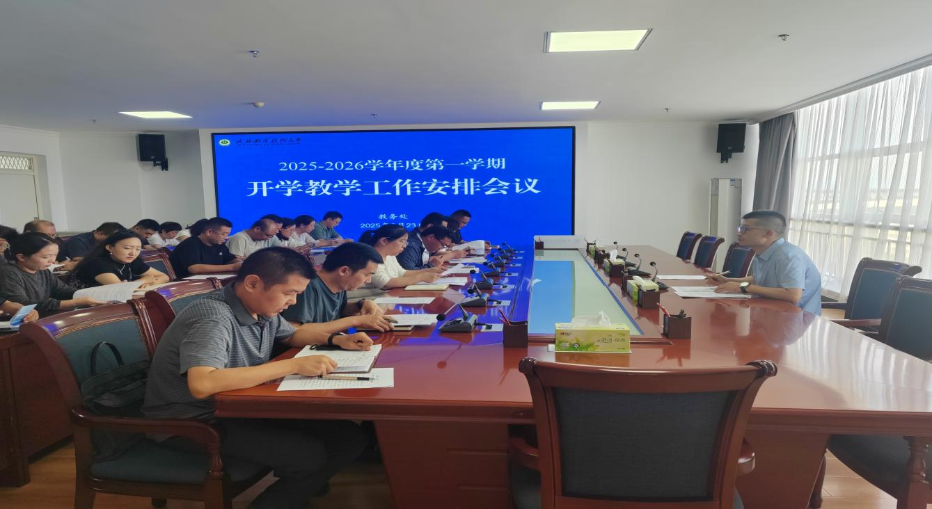 為統(tǒng)籌推進新學期教學工作有序開展,確保各項教學任務(wù)落地見效,8月23日下午,武威職業(yè)技術(shù)大學在能源科技樓811會議室召開2025-2026學年度第一學期開學教學工作安排會議。各學院(部)負責人、教學秘書、教務(wù)處全體人員參加。