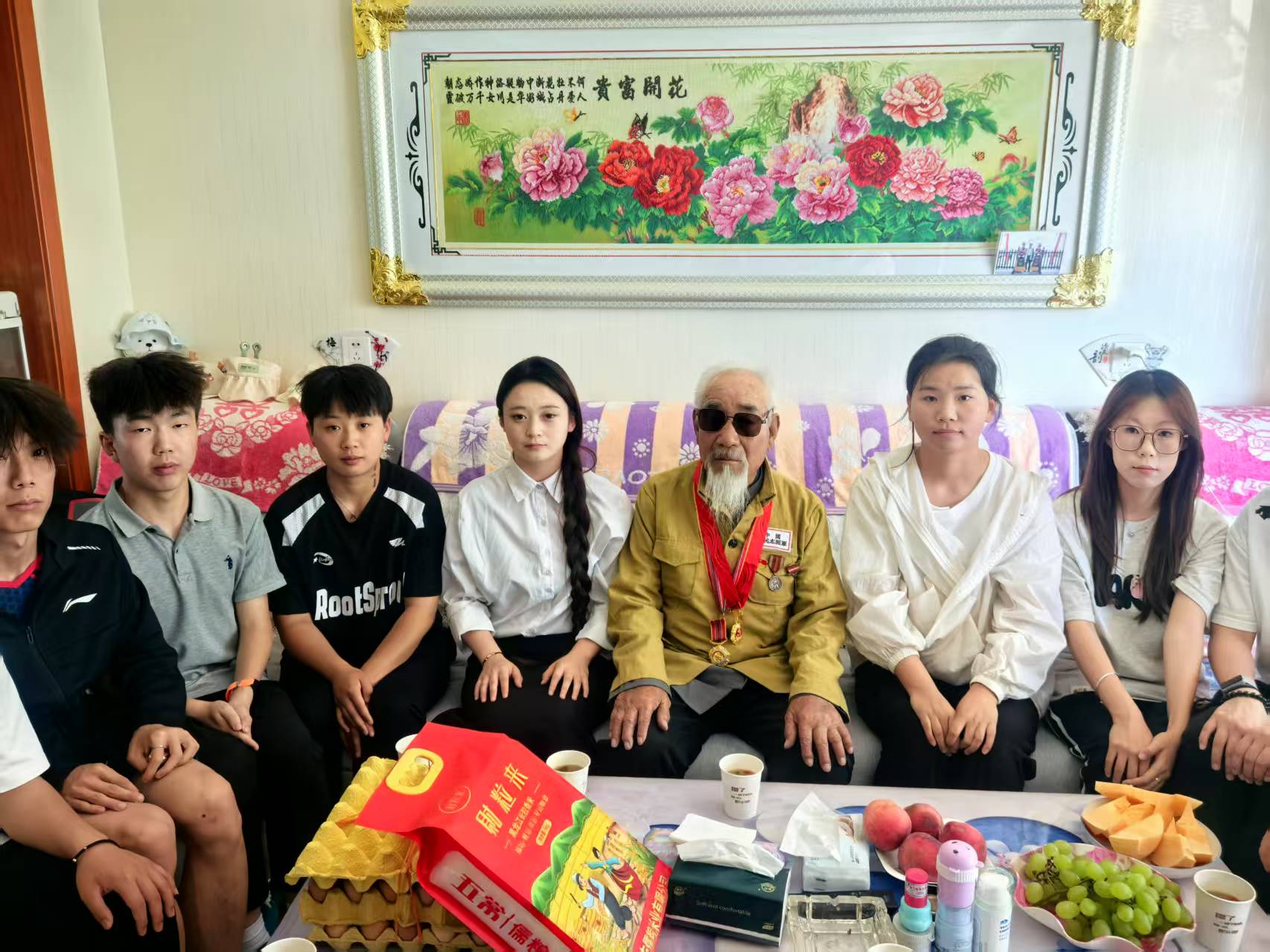 現(xiàn)居住于康寧新村八組、已93歲高齡的張克錄爺爺是參加過(guò)抗美援朝的退役老英雄。9月25日,堅(jiān)持駐村4年的靳東生老師與學(xué)?!八{(lán)天愛心協(xié)會(huì)”指導(dǎo)教師、青年大學(xué)生,帶著學(xué)校的牽掛、問候與崇敬,一起到張克錄爺爺家中,為老人送上關(guān)愛祝福,開展了一場(chǎng)“聆聽英雄故事、傳承紅色基因”的特別走訪、慰問活動(dòng)。張克錄爺爺精神矍鑠,身著掛有勛章的志愿軍軍裝,向師生們講述當(dāng)年志愿軍戰(zhàn)士冒著凜冽寒風(fēng)跨過(guò)鴨綠江,爬冰臥雪英勇戰(zhàn)斗的生動(dòng)事跡;驚心動(dòng)魄的戰(zhàn)斗故事,在老人樸實(shí)無(wú)華的語(yǔ)言中顯得格外感人,在場(chǎng)師生仿佛穿越時(shí)空,親眼目睹了志愿軍戰(zhàn)士們用血肉之軀筑起的鋼鐵長(zhǎng)城;說(shuō)到動(dòng)情處,老人和師生們的眼眶已經(jīng)濕潤(rùn),師生心靈受到了深刻洗禮、愛國(guó)情懷得到了高度升華。