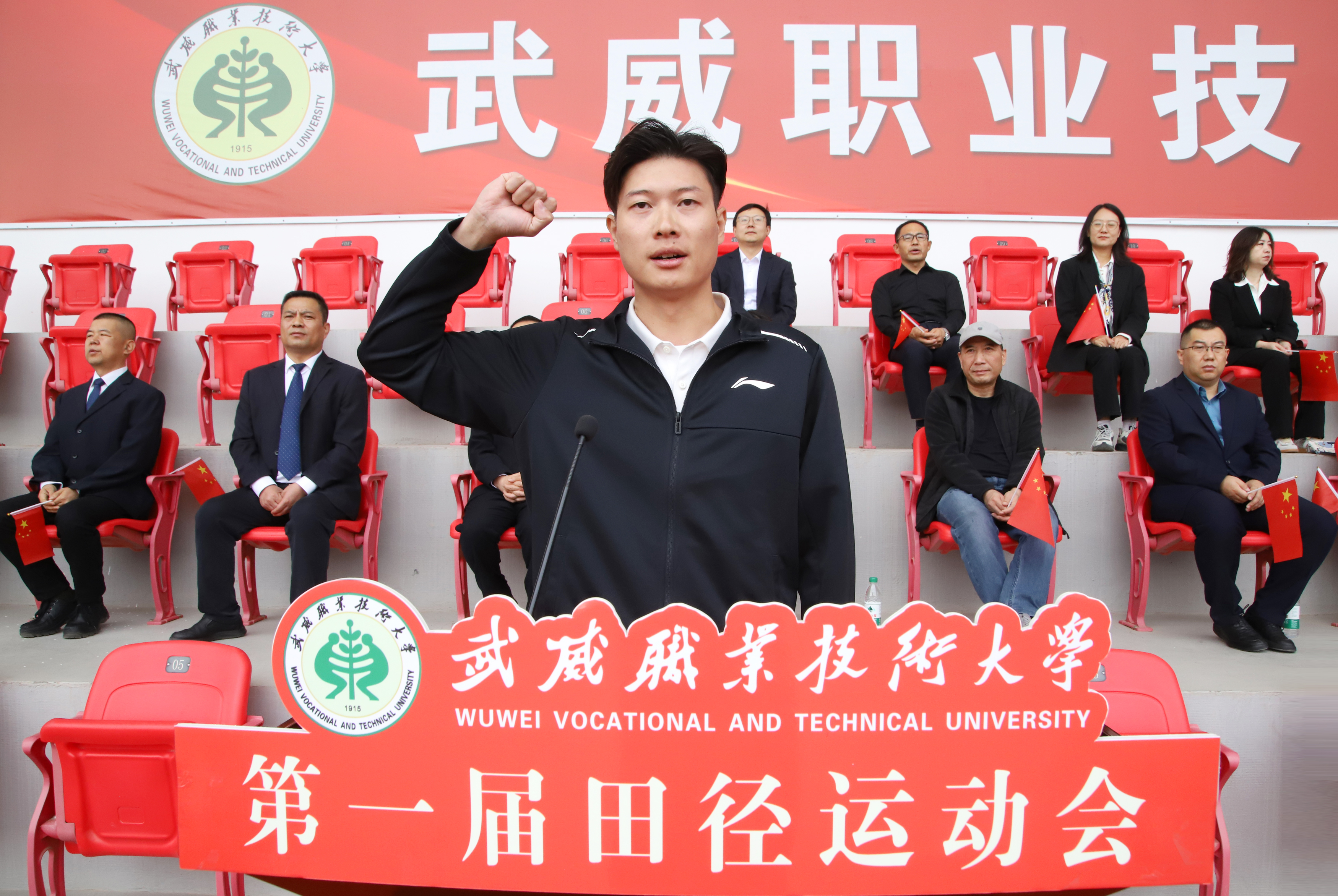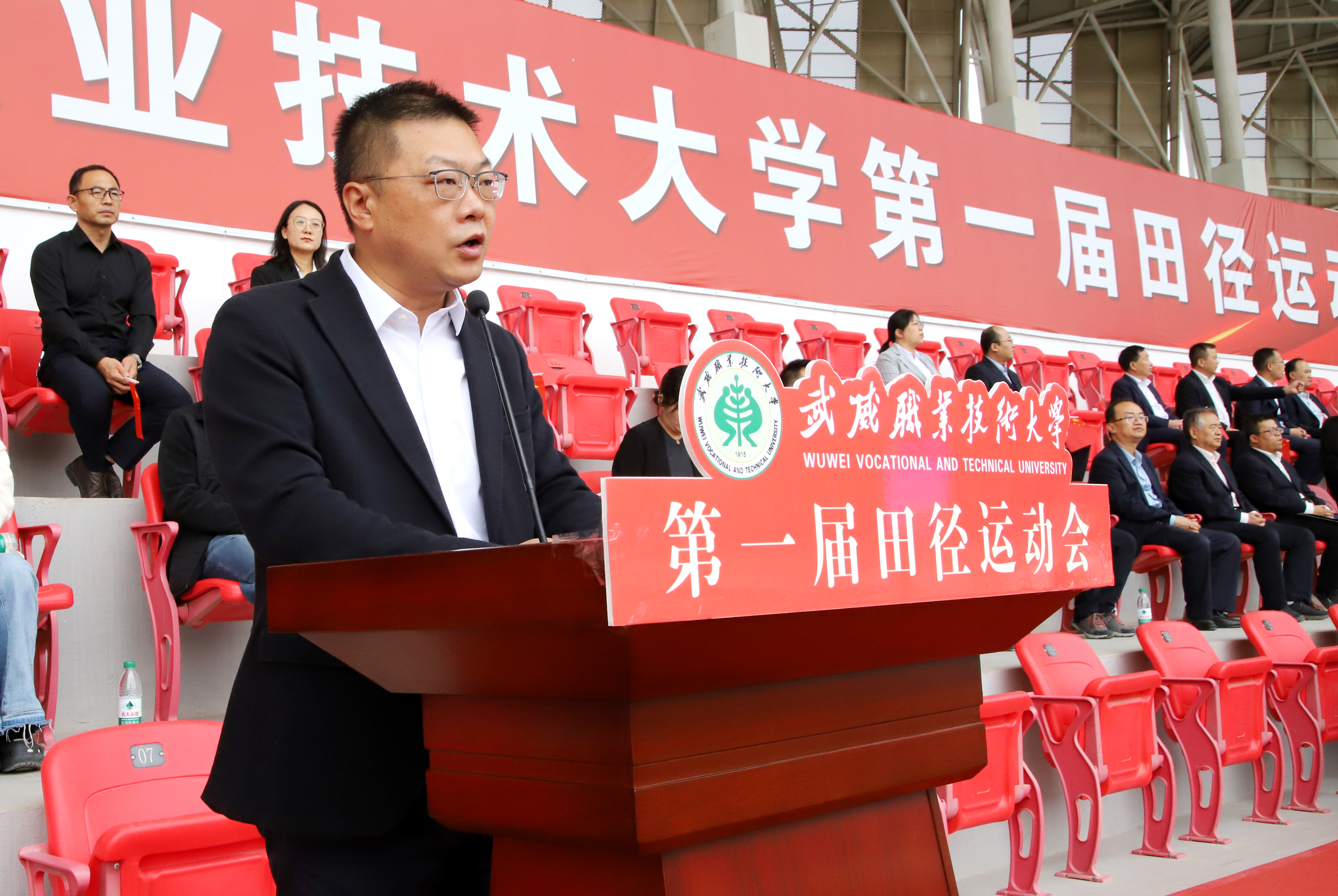 王宏宣布武威職業(yè)技術(shù)大學(xué)第一屆田徑運動會開幕。