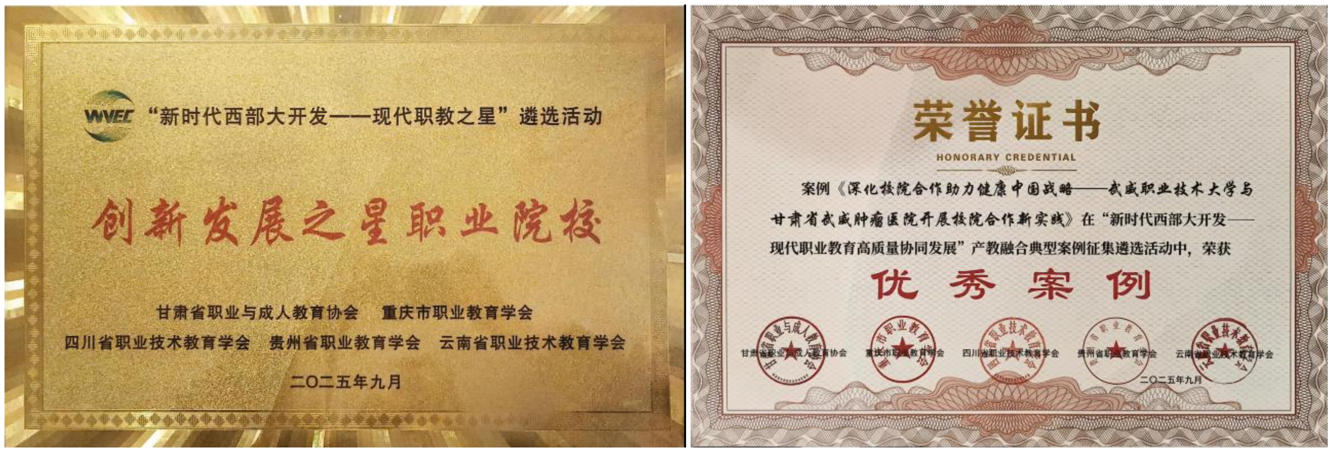 近日,從“新時代西部大開發(fā)——現(xiàn)代職業(yè)教育高質(zhì)量協(xié)同發(fā)展(蘭州)大會”上傳來喜訊,武威職業(yè)技術(shù)大學(xué)在甘肅省職業(yè)與成人教育協(xié)會組織的“新時代西部大開發(fā)——現(xiàn)代職教之星”和“新時代西部大開發(fā)——產(chǎn)教融合典型案例”征集遴選活動中榮獲兩項重要榮譽。學(xué)校獲評“創(chuàng)新發(fā)展之星職業(yè)院?!?,《深化校院合作助力健康中國戰(zhàn)略——武威職業(yè)技術(shù)大學(xué)與甘肅省武威腫瘤醫(yī)院開展校院合作新實踐》榮獲“產(chǎn)教融合典型案例優(yōu)秀案例”。