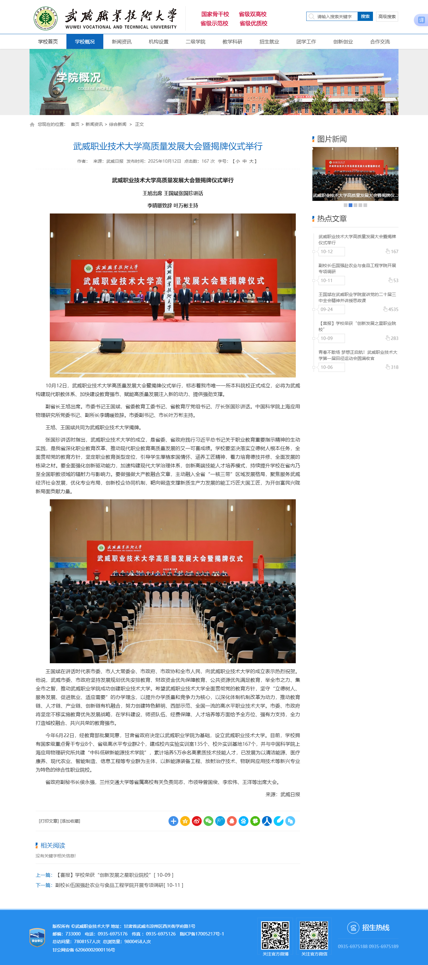 武威職業(yè)技術(shù)大學(xué)高質(zhì)量發(fā)展大會(huì)暨揭牌儀式舉行