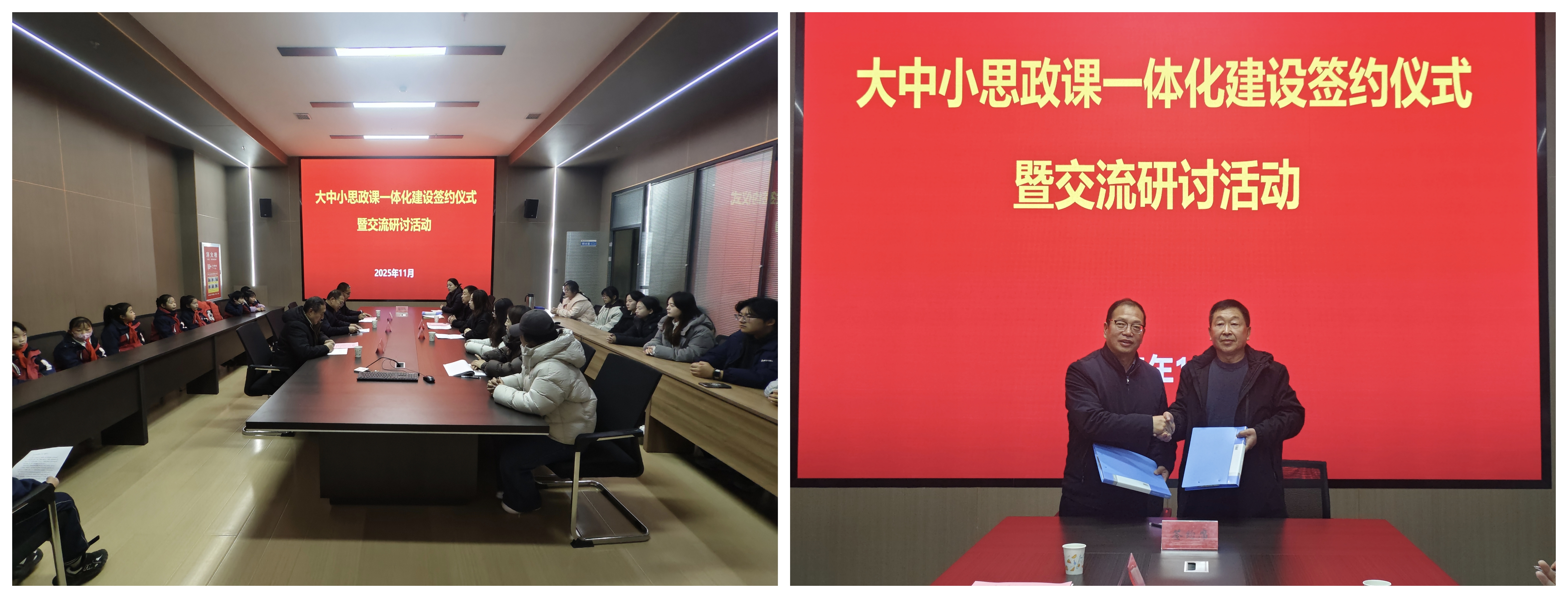 簽約儀式上,劉心和徐主年分別致辭,雙方共同簽署了《大中小學思政課一體化共建協(xié)議書》,并圍繞共建目標、合作內(nèi)容與實施機制進行了深入交流。此次合作簽約為院校雙方搭建了資源共享、優(yōu)勢互補、協(xié)同育人的平臺,希望雙方在師資隊伍共建、實踐資源共享、課程創(chuàng)新突破等方面多維度協(xié)同推進,不斷探索一體化建設(shè)的長效機制,打破各學段在課程、資源、師資等方面的壁壘,實現(xiàn)有機銜接,促進優(yōu)質(zhì)教學經(jīng)驗互鑒、特色教學模式推廣,共同提升立德樹人效果。