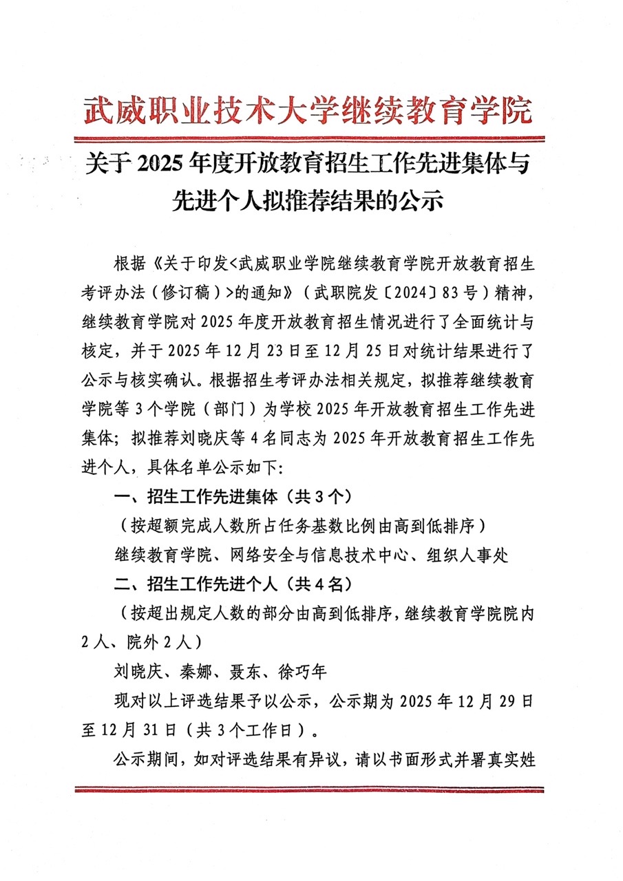 關于2025年度開放教育招生工作先進集體與先進個人擬推薦結果的公示