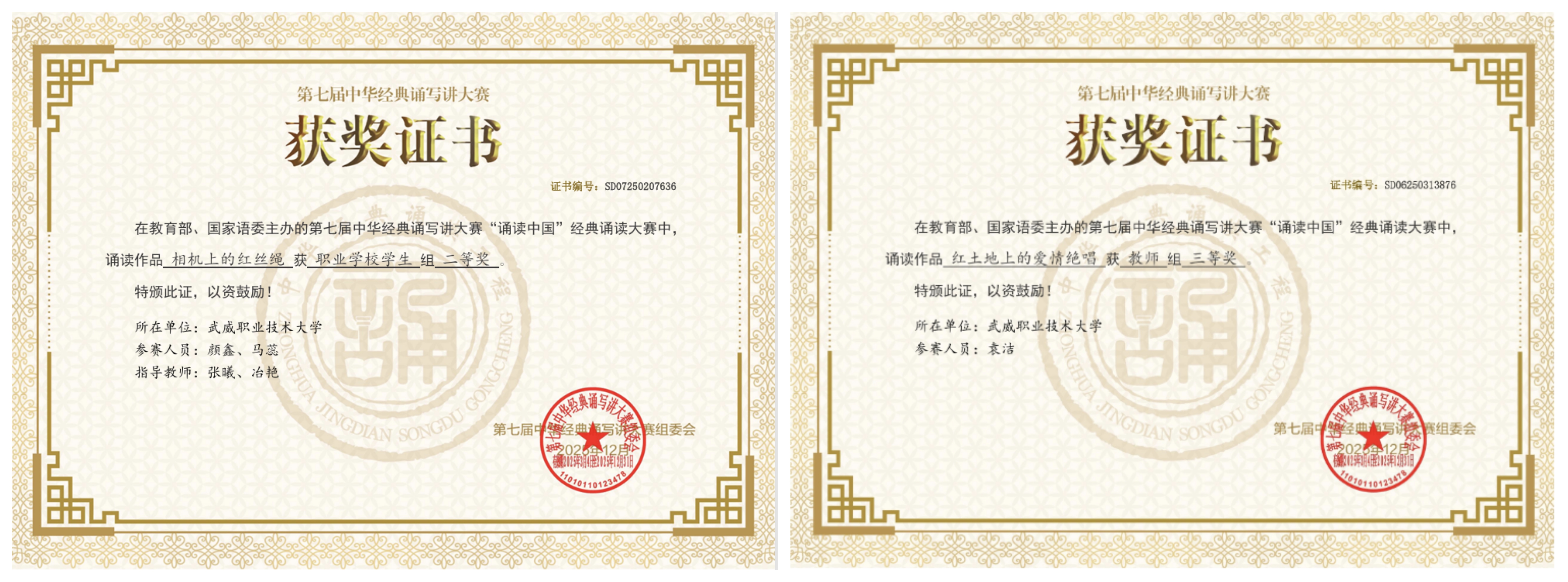學(xué)生組作品《相機(jī)上的紅絲繩》榮獲全國(guó)二等獎(jiǎng),教師組作品《紅土地上的愛(ài)情絕唱》榮獲全國(guó)三等獎(jiǎng),這是學(xué)校歷年參加全國(guó)中華經(jīng)典誦寫(xiě)講大賽中最好成績(jī),此次獲獎(jiǎng)不僅是對(duì)學(xué)校師生專(zhuān)業(yè)素養(yǎng)的肯定,更是對(duì)學(xué)校推進(jìn)中華優(yōu)秀傳統(tǒng)文化進(jìn)校園的生動(dòng)實(shí)踐。學(xué)校將繼續(xù)以經(jīng)典誦寫(xiě)講大賽為契機(jī),深化語(yǔ)言文化教育,豐富校園文化活動(dòng),讓更多師生在誦讀經(jīng)典中涵養(yǎng)品格、啟迪智慧,讓中華優(yōu)秀傳統(tǒng)文化在校園中薪火相傳、生生不息。