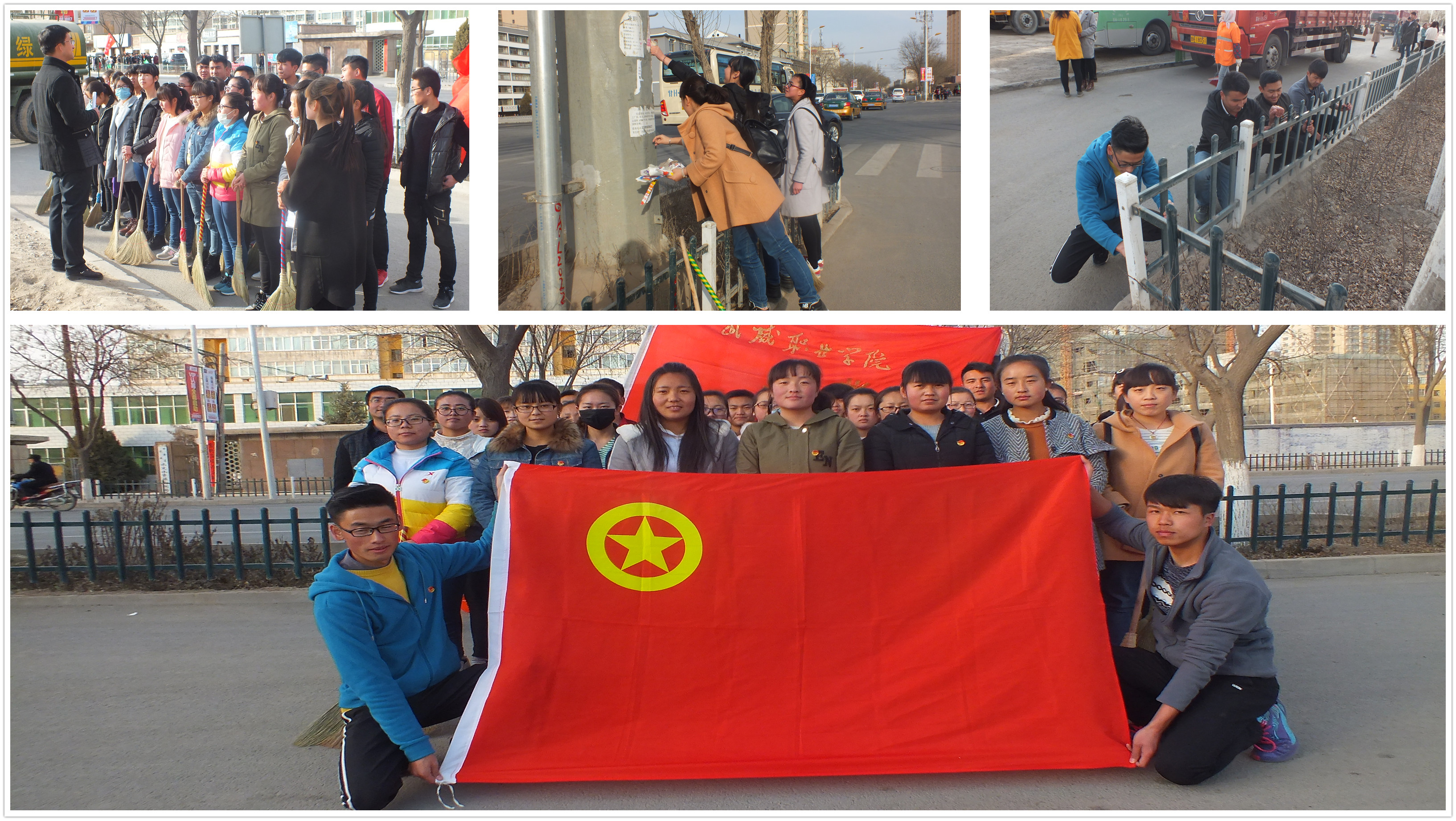 三月春風(fēng)拂職院,雷鋒精神暖人心。沿著雷鋒的足跡,秉承雷鋒精神。3月3日下午,藥學(xué)系團總支結(jié)合院團委安排,組織廣大青年志愿者進(jìn)行“傳承雷鋒精神,共建美麗校園”雷鋒日主題教育實踐活動,青年志愿者們紛紛走上街頭,盡己所能,對學(xué)院周邊道路環(huán)境衛(wèi)生進(jìn)行打掃,廣告清理,垃圾清運等志愿服務(wù)活動。青年志愿者們積極勞動,傳播青春正能量,為建設(shè)美好家園,貢獻(xiàn)微薄力量。