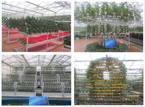 蔬菜高科技無土栽培模式展廳展示了各種無土栽培模式,主要有水培、霧培、基質(zhì)培、管道培、立柱培、吊管培、螺旋式立體栽培等。管道設施密密匝匝、高低參差、錯落有致,葉綠、花紅、果黃,使展廳成為集各種工藝造型展示和高科技管道栽培模式于一體的薈萃園。
