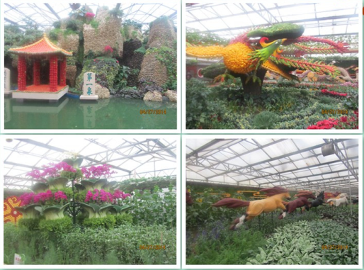 蔬菜園藝廳為優(yōu)秀蔬菜景觀的集中營,五顏六色的種子、蔬菜、花卉及其他普通材料,在園藝師的手中演繹成氣勢恢弘、雄偉壯觀、形神兼?zhèn)洹⒁馊ぬ斐傻乃囆g精品。其中主景點“美麗中國”將大明湖牌坊、蓬萊閣、五岳獨尊、孔子雕像、象鼻山、黃果樹瀑布、云岡石窟、嘉峪關、長白山瀑 布……30余個國內(nèi)知名人文及自然景點穿插其中。整個景點從遠處看去,把祖國的大好河山、現(xiàn)代科技和鮮活蔬菜有機融為一體,凸顯著“綠色·科技·未來”的主題。