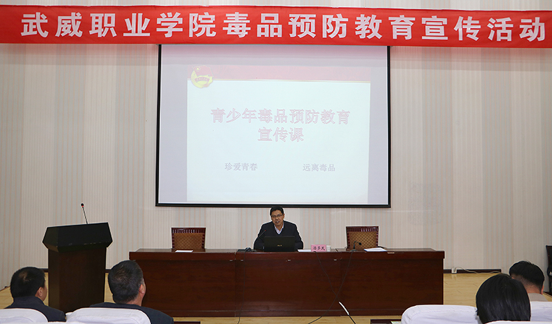 3月30日下午,院團委聯(lián)合學生工作處、保衛(wèi)處在正德廳舉辦武威職業(yè)學院毒品預防教育宣傳活動,團市委書記潘多民出席活動并授課,學院各級團干部270多人參加了活動。活動由學生工作處處長王守云主持。
