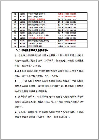 5.詳細(xì)信息請參看甘肅省教育考試院《關(guān)于做好2016年9月全國計算機等級考試網(wǎng)上報名工作的通知》(甘教考院〔2016〕95號文件)及《甘肅省2016下半年全國計算機等級考試公告》(已傳至群文件)。