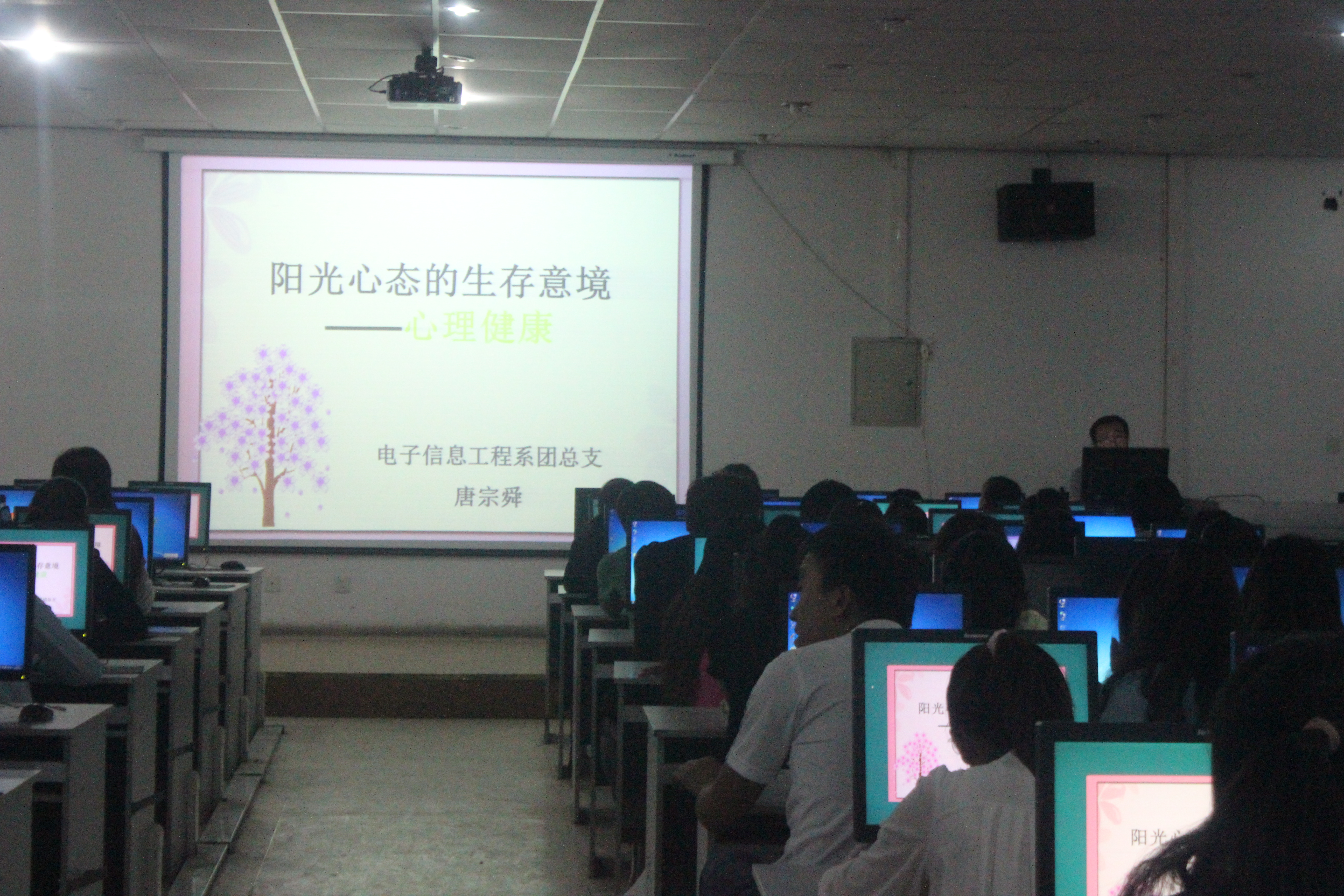 為了進(jìn)一步推進(jìn)大學(xué)生心理健康教育宣傳工作深入開展,在學(xué)生中營造一種學(xué)習(xí)、普及、宣傳心理健康知識,關(guān)心、理解、幫助有心理困擾的同學(xué),共同創(chuàng)造良好氛圍,促進(jìn)大學(xué)生健康成長,以適應(yīng)新時(shí)代、新環(huán)境需要。5月26日晚8時(shí),電子信息工程系在學(xué)院十號機(jī)房舉辦心理健康教育專題講座。