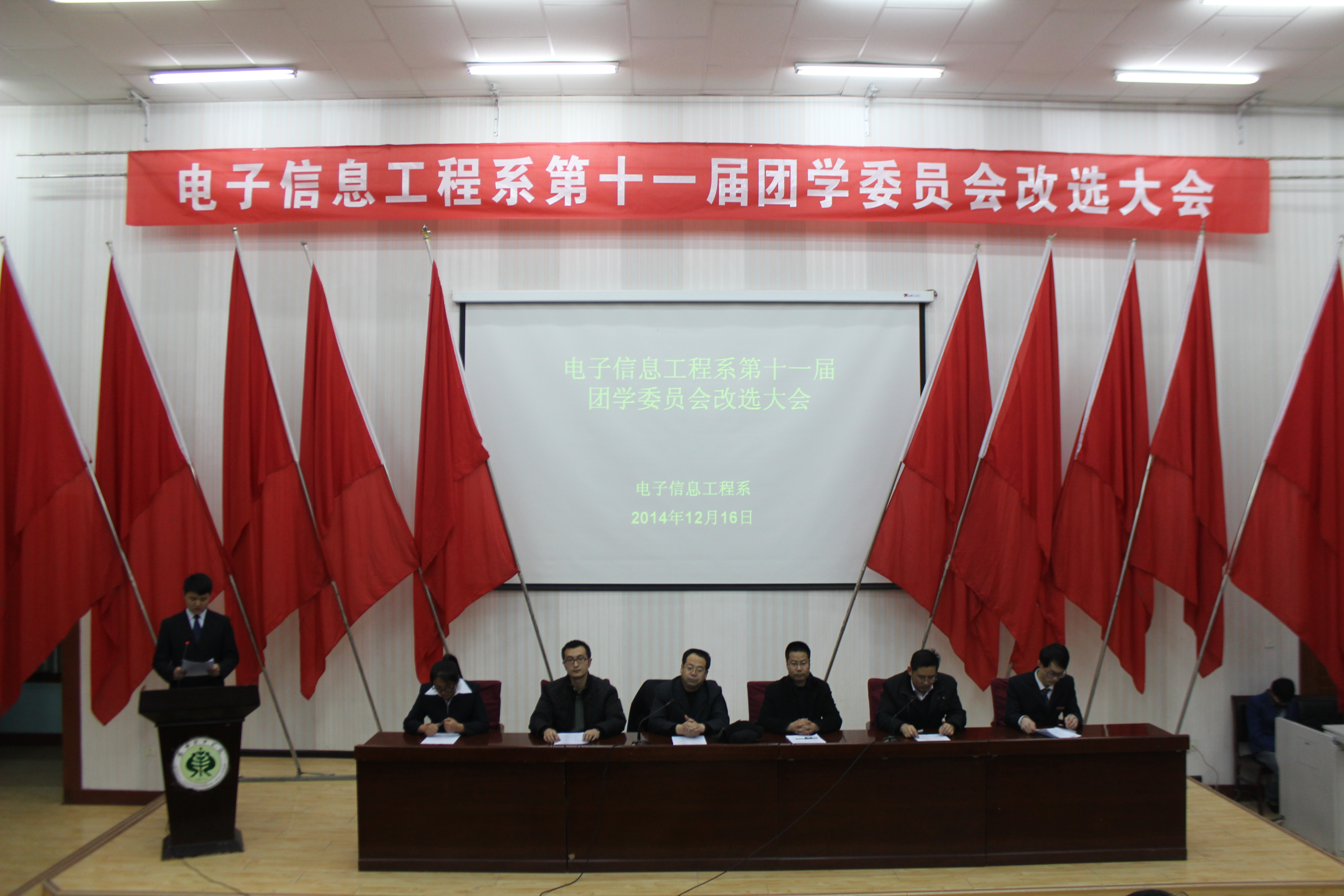 會(huì)議在莊嚴(yán)的國(guó)歌聲中拉開了帷幕。電子信息工程系團(tuán)總支書記唐宗舜老師首先致開幕詞,巨星星、李向龍同學(xué)分別代表上屆團(tuán)總支學(xué)生會(huì)做了工作匯報(bào),對(duì)上一年的工作進(jìn)行了總結(jié)。同時(shí)本次大會(huì)產(chǎn)生了第十一屆團(tuán)、學(xué)委員會(huì)成員。新當(dāng)選學(xué)生會(huì)主席陳利龍同學(xué)和新當(dāng)選團(tuán)總支副書記王鵬飛同學(xué)進(jìn)行了就職演講。