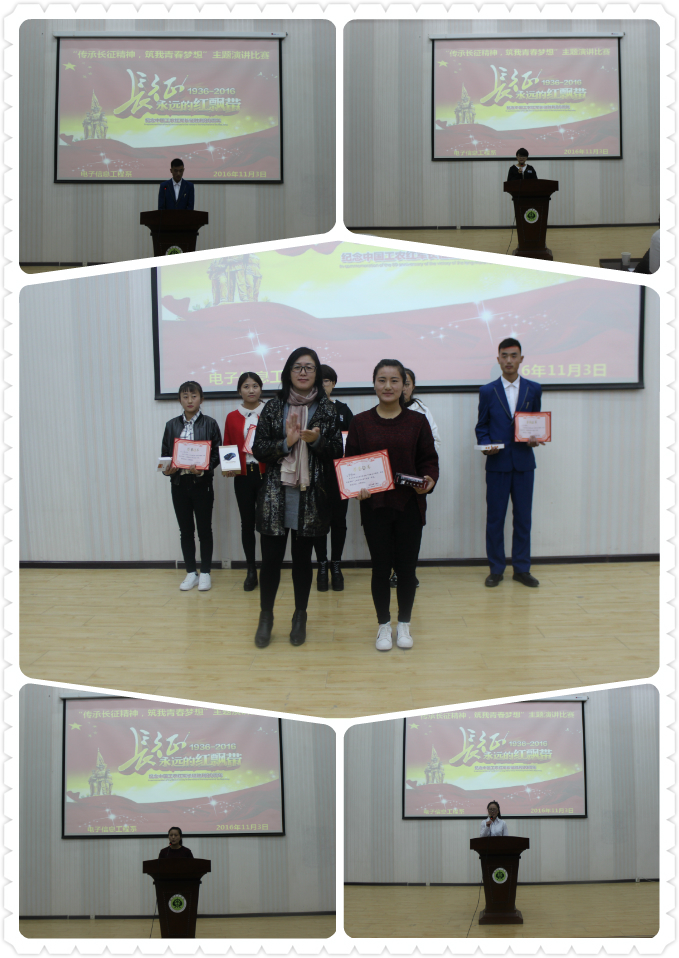 為貫徹習(xí)近平總書記在“紅軍長征勝利80周年大會”上發(fā)表“不忘初心、繼續(xù)前進(jìn),走好新的長征路”的重要講話,激發(fā)師生弘揚(yáng)偉大的長征精神,電子信息工程系于11月3日在正德廳舉辦了 “傳承長征精神,筑我青春夢想”主題演講比賽。電子信息工程系主任李亞梅及各位班主任擔(dān)任本次比賽評委,2016級全體學(xué)生觀看了比賽。
