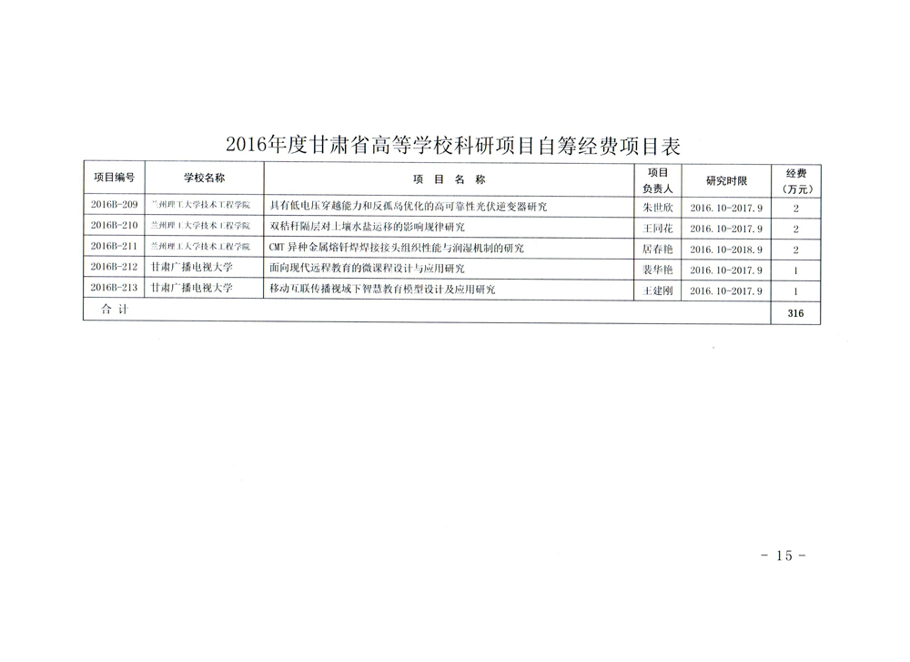 甘肅省教育廳關(guān)于下達(dá)2016年度甘肅省高等學(xué)校科研項(xiàng)目自籌經(jīng)費(fèi)項(xiàng)目的通知