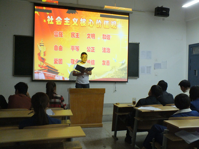 為深入學(xué)習(xí)貫徹黨的十八大精神和習(xí)近平總書記系列講話中關(guān)于大力推進(jìn)社會(huì)主義核心價(jià)值體系建設(shè)的要求,積極響應(yīng)院團(tuán)委的號(hào)召,我系于4月14日組織師生在4號(hào)教學(xué)樓313教室開展了“社會(huì)主義核心價(jià)值觀引領(lǐng)我成長”主題演講比賽。