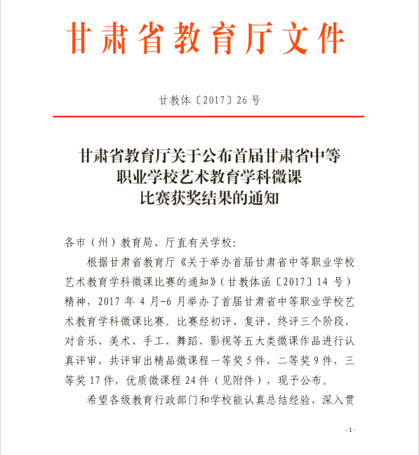 人文藝術(shù)教育系教師在首屆甘肅省中等職業(yè)學(xué)校藝術(shù)教育學(xué)科微課比賽中喜獲佳績(jī)