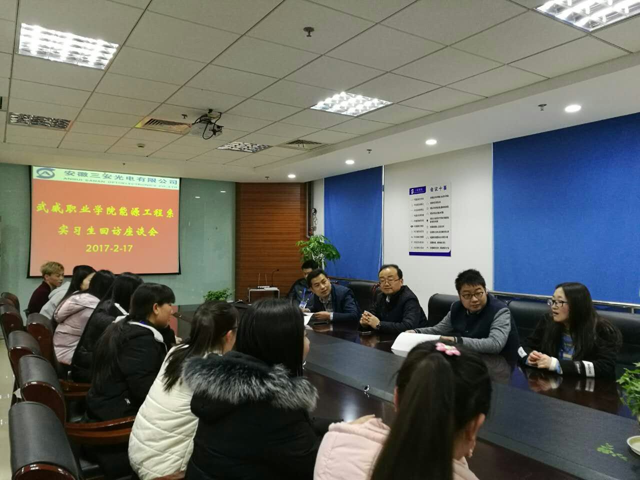 為全面掌握學生頂崗實習情況,解決學生實習就業(yè)中存在的問題,進一步做好學生頂崗實習工作。2月14日至18日,我系黨總支書記黃文源帶隊前往福建泉州陽光中科能源股份有限公司和安徽蕪湖三安光電科技有限公司對我系2014級頂崗實習學生進行了回訪。