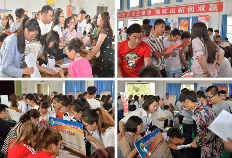 為切實做好學(xué)院畢業(yè)生就業(yè)工作,大力構(gòu)建畢業(yè)生與用人單位的交流平臺,積極為用人單位輸送應(yīng)用型人才,6月27日上午,在學(xué)院大禮堂舉行了我院2017年校園招聘會。此次招聘會參會企業(yè)共80多家,其中武威當(dāng)?shù)仄髽I(yè)12家,省內(nèi)企業(yè)33家,外地企業(yè)40多家。招聘會提供就業(yè)崗位1500多個,招聘崗位涉及了機械制造、信息工程、能源化工、醫(yī)藥衛(wèi)生、經(jīng)濟管理、學(xué)前教育、市場營銷、現(xiàn)代農(nóng)業(yè)等行業(yè),參加應(yīng)聘學(xué)生近3000人次,現(xiàn)場意向性簽約800多人。