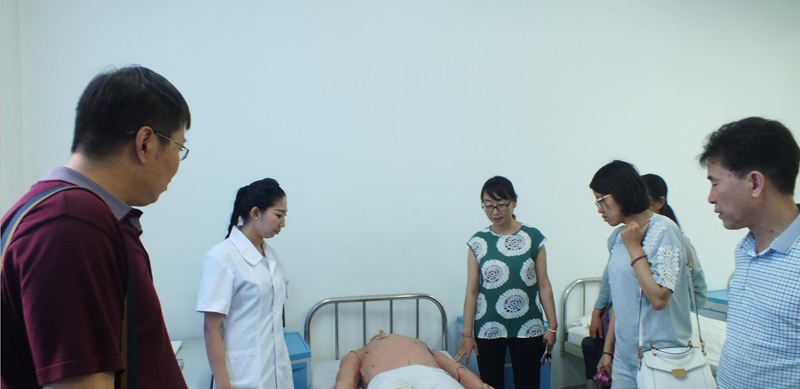 趙鳳舞一行參觀了護理系的生命科技館、機能實訓(xùn)室、基護實訓(xùn)室、內(nèi)外科實訓(xùn)室等醫(yī)學(xué)類實訓(xùn)室,詳細(xì)了解了實驗設(shè)備的運行情況和實驗實訓(xùn)課程的教學(xué)管理模式。韓曉萍向來賓們介紹了我院護理專業(yè)的發(fā)展歷史、課程建設(shè)、師資力量、實習(xí)就業(yè)及籌建實驗實訓(xùn)室取得的成果。