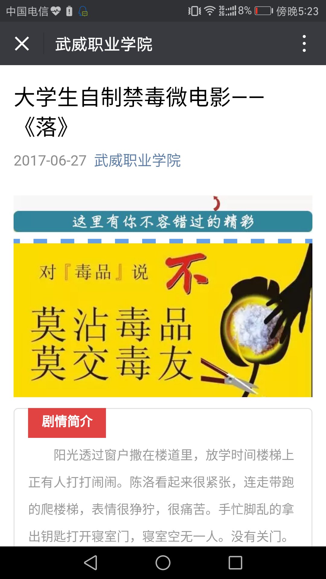 宣傳周期間,利用校園廣播、宣傳欄、新媒體等多種載體以及懸掛宣傳標語、召開“無毒青春,健康生活”主題班會、觀看禁毒影片等多種形式,向廣大師生講述了新型毒品的種類、毒品對個人、對家庭、對社會的危害以及作為當代大學(xué)生應(yīng)如何樹立正確的人生觀和價值觀,潔身自好,抵制誘惑,避免誤入歧途等常識。