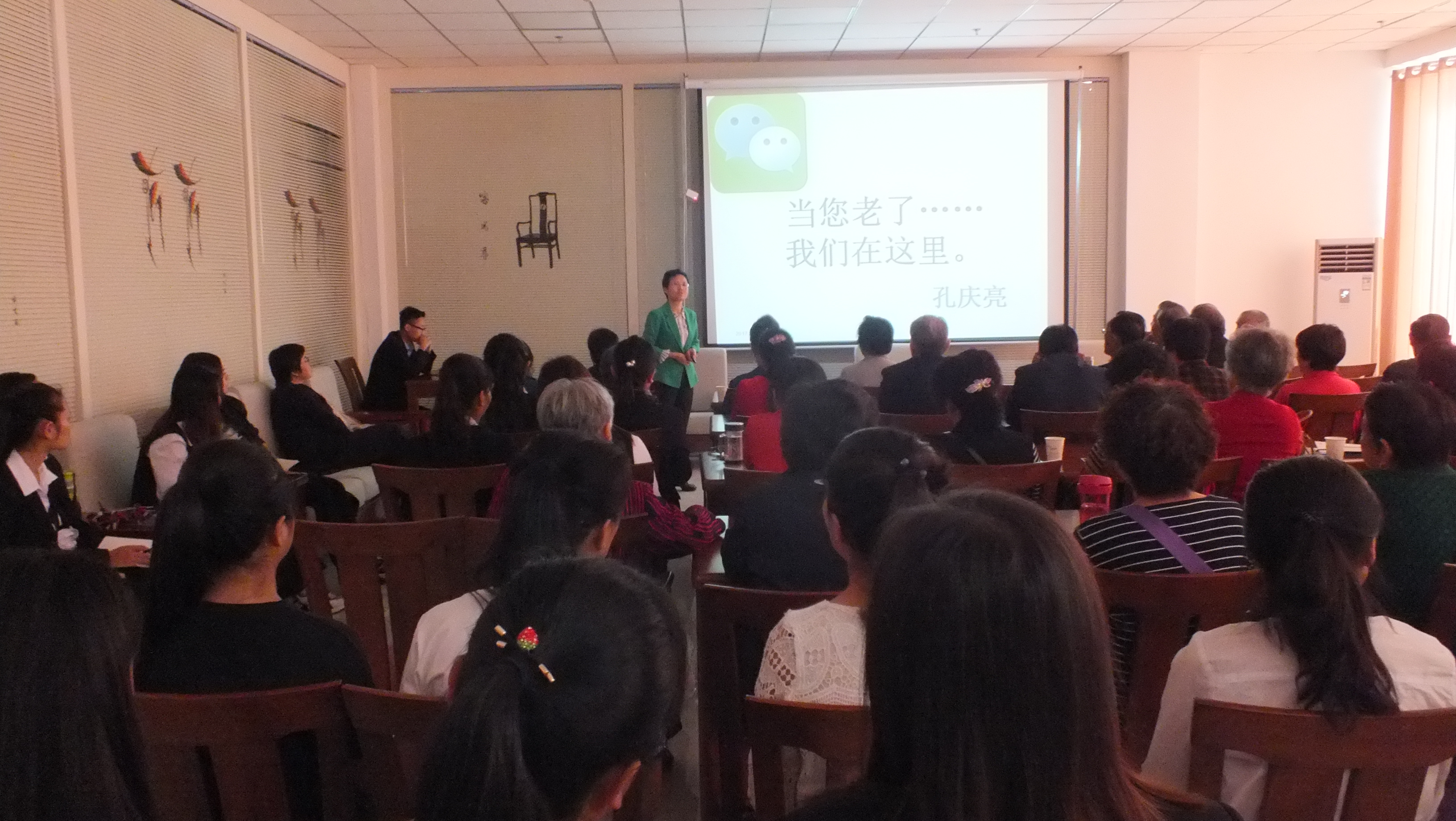目前,我國(guó)老齡化社會(huì)形態(tài)已現(xiàn)雛形,養(yǎng)老問(wèn)題日益突出,學(xué)院充分發(fā)揮學(xué)科資源優(yōu)勢(shì),由專業(yè)教師為養(yǎng)老中心老年人做專題講座,介紹我國(guó)養(yǎng)老服務(wù)體系及養(yǎng)老現(xiàn)狀,普及老年人心理健康、生活保健、疾病預(yù)防等方面的相關(guān)知識(shí),使老年人體會(huì)到“老有所養(yǎng),老有所樂(lè)”,為我市老年人群體解決醫(yī)療保健問(wèn)題提供了一個(gè)獲取專業(yè)幫助的渠道。