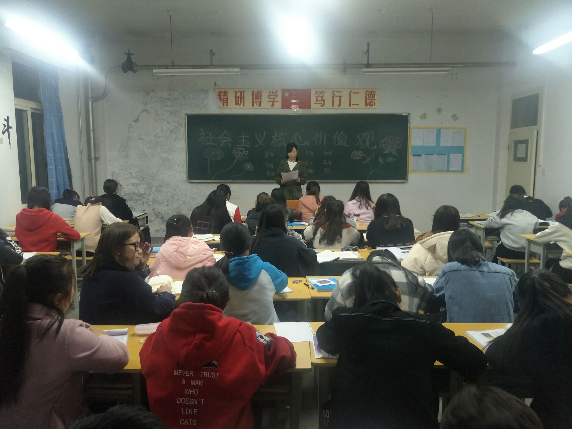 ?根據(jù)藥學(xué)系對社會主義核心價值觀主題宣傳教育創(chuàng)建工作的安排,11月6日,利用晚自習(xí),17級藥學(xué)5班召開主題班會,深入學(xué)習(xí)宣傳社會主義核心價值觀的概念內(nèi)涵、發(fā)展歷程、價值意義、基本原則、踐行路徑、實(shí)踐活動和“24字人知人曉”等內(nèi)容。同時,將“24字內(nèi)容”在教室、宿舍張貼宣傳,做到社會主義核心價值觀進(jìn)教室、進(jìn)宿舍、進(jìn)頭腦。通過學(xué)習(xí),對“24字人知人曉”工程做到了班級全覆蓋,班級學(xué)生對社會主義核心價值觀內(nèi)涵的認(rèn)識和理解進(jìn)一步加深。今后,將根據(jù)系上安排,不斷將培育和踐行社會主義核心價值觀工作引向深入。
