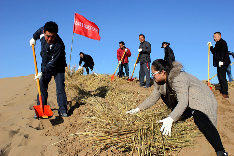 直屬附屬醫(yī)院組織干部職工赴八十里大沙參加義務(wù)壓沙治沙勞動